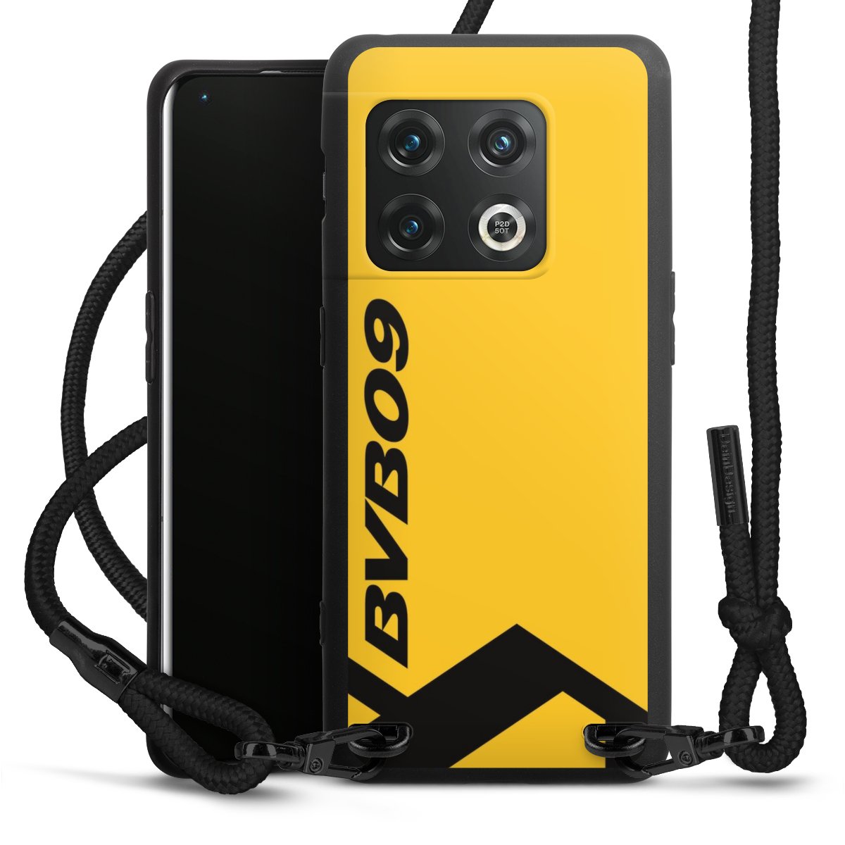 The matt black silicone case is made of flexible TPU (thermoplastic polyurethane) and offers robust protection. The durable, unbreakable material makes the cover flexible and dimensionally stable at the same time. The matte surface makes your design stand out more and is less susceptible to fingerprints and dirt. The stylish trend accessory fits comfortably in the hand and is perfectly complemented by the fabric (polyester) mobile phone strap. The braided fabric strap is approx. 1.70 metres long with a diameter of approx. 0.5 cm. Due to the special knotting technique, the length of the strap can be adjusted by simply pulling it, so that you can adapt it individually to your wishes. The practical case to wear around your neck is available with the fabric strap in black. As a little icing on the cake, we have provided the strap with a chic metal fastener in matt black. The strap is securely fastened to the case with loops made of high-quality genuine leather and press studs. The ends of the fabric strap are covered with metallic end caps and thus protected from fraying.