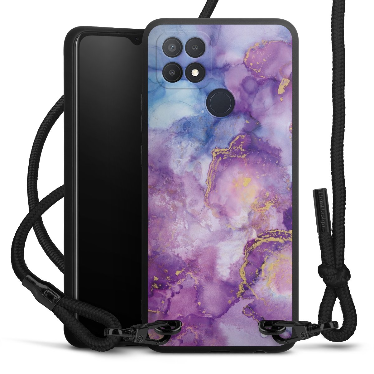 We use the solid direct print process for this phone case, which is why the print area only covers the back and the edge remains unprinted. The case to wear around your neck can be ordered unprinted, fully printed, or partially printed. For your design, either choose one of our exclusive shop motifs or get creative and create your own design, for example with photos and overlays. Design your own personal trend accessory and make an individual statement on the streets!