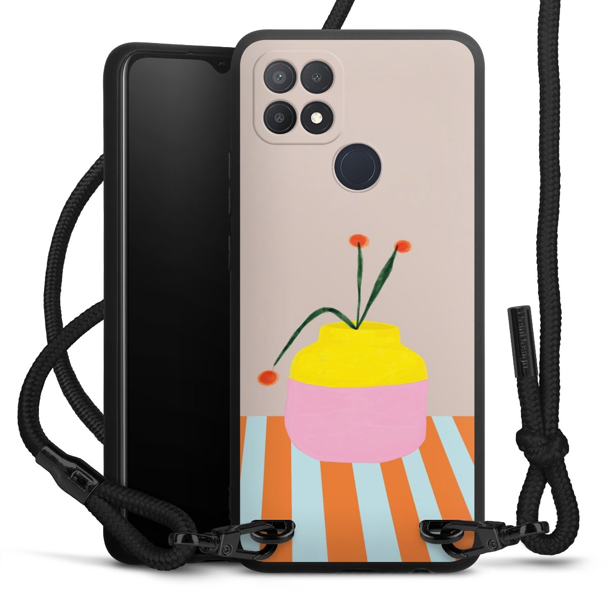 We use the solid direct print process for this phone case, which is why the print area only covers the back and the edge remains unprinted. The case to wear around your neck can be ordered unprinted, fully printed, or partially printed. For your design, either choose one of our exclusive shop motifs or get creative and create your own design, for example with photos and overlays. Design your own personal trend accessory and make an individual statement on the streets!