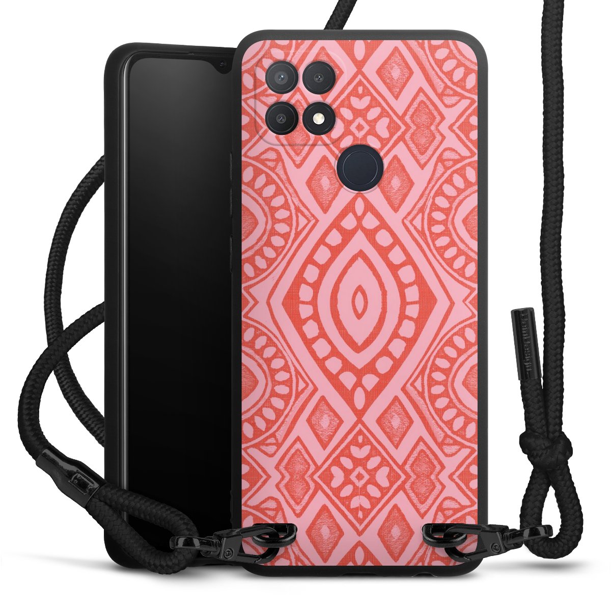 We use the solid direct print process for this phone case, which is why the print area only covers the back and the edge remains unprinted. The case to wear around your neck can be ordered unprinted, fully printed, or partially printed. For your design, either choose one of our exclusive shop motifs or get creative and create your own design, for example with photos and overlays. Design your own personal trend accessory and make an individual statement on the streets!