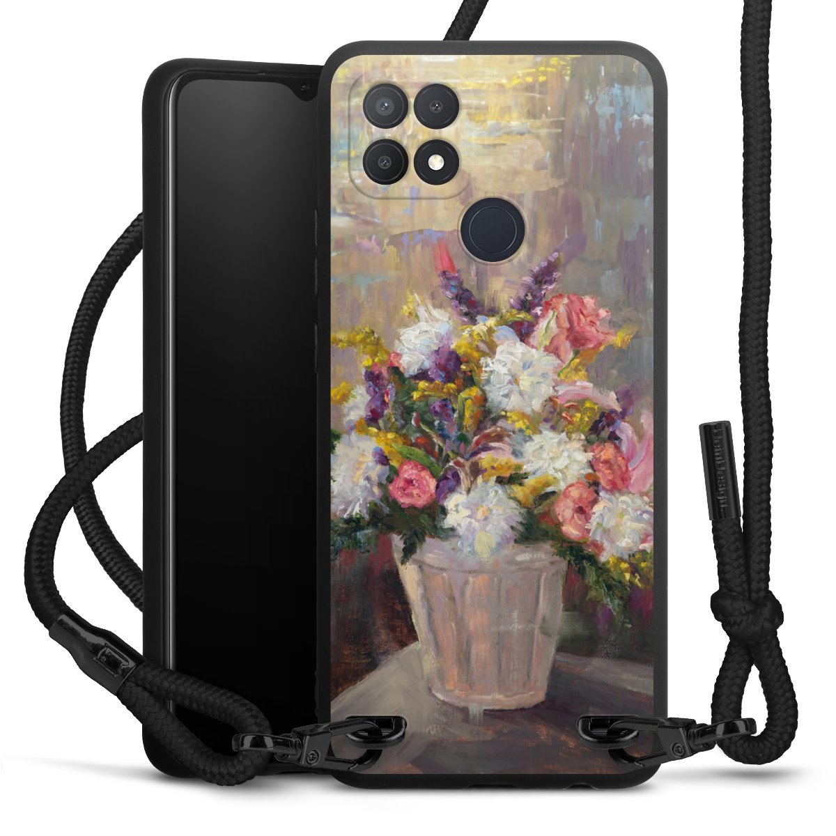 The matt black silicone case is made of flexible TPU (thermoplastic polyurethane) and offers robust protection. The durable, unbreakable material makes the cover flexible and dimensionally stable at the same time. The matte surface makes your design stand out more and is less susceptible to fingerprints and dirt. The stylish trend accessory fits comfortably in the hand and is perfectly complemented by the fabric (polyester) mobile phone strap. The braided fabric strap is approx. 1.70 metres long with a diameter of approx. 0.5 cm. Due to the special knotting technique, the length of the strap can be adjusted by simply pulling it, so that you can adapt it individually to your wishes. The practical case to wear around your neck is available with the fabric strap in black. As a little icing on the cake, we have provided the strap with a chic metal fastener in matt black. The strap is securely fastened to the case with loops made of high-quality genuine leather and press studs. The ends of the fabric strap are covered with metallic end caps and thus protected from fraying.