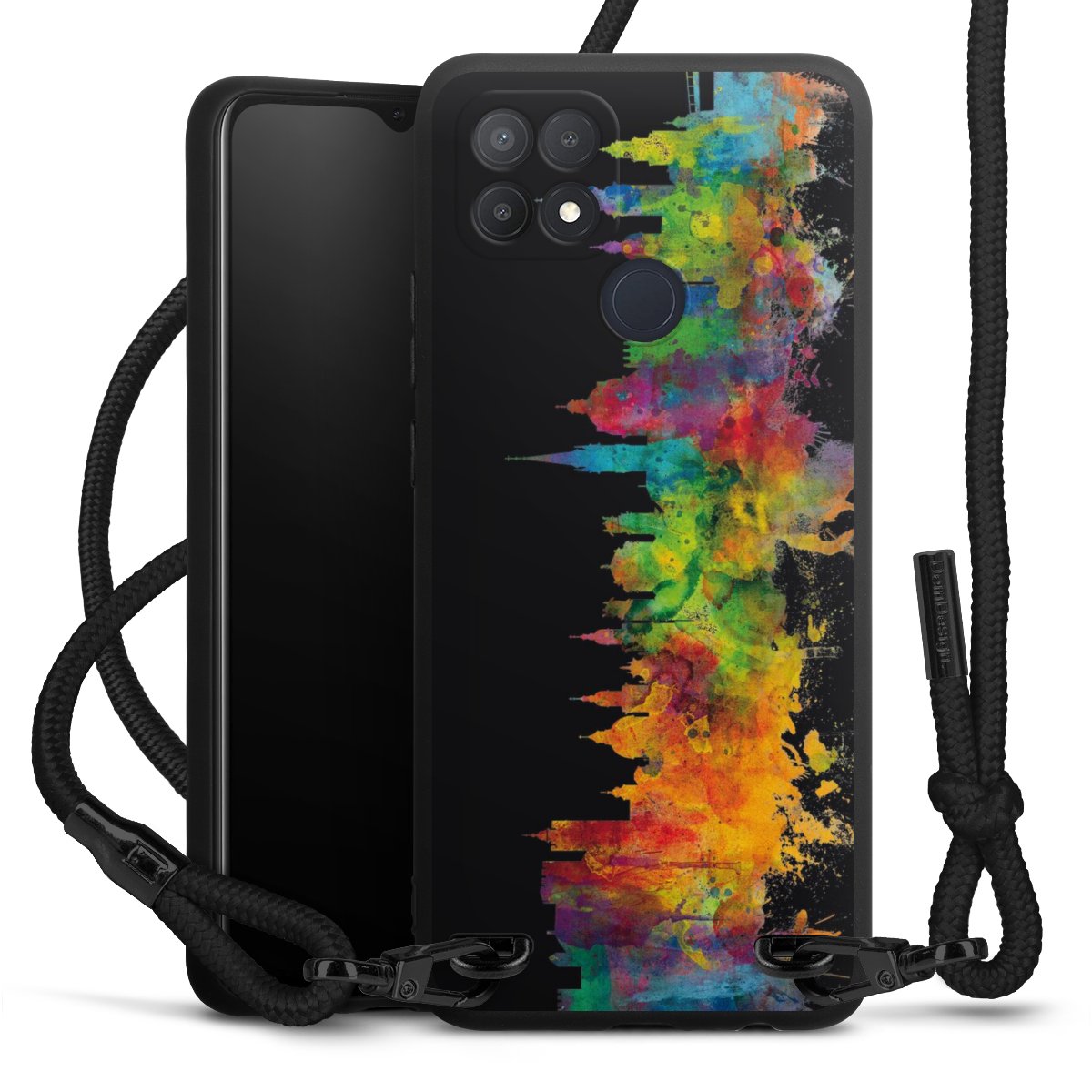 We use the solid direct print process for this phone case, which is why the print area only covers the back and the edge remains unprinted. The case to wear around your neck can be ordered unprinted, fully printed, or partially printed. For your design, either choose one of our exclusive shop motifs or get creative and create your own design, for example with photos and overlays. Design your own personal trend accessory and make an individual statement on the streets!