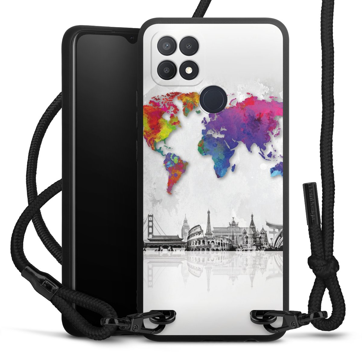 We use the solid direct print process for this phone case, which is why the print area only covers the back and the edge remains unprinted. The case to wear around your neck can be ordered unprinted, fully printed, or partially printed. For your design, either choose one of our exclusive shop motifs or get creative and create your own design, for example with photos and overlays. Design your own personal trend accessory and make an individual statement on the streets!