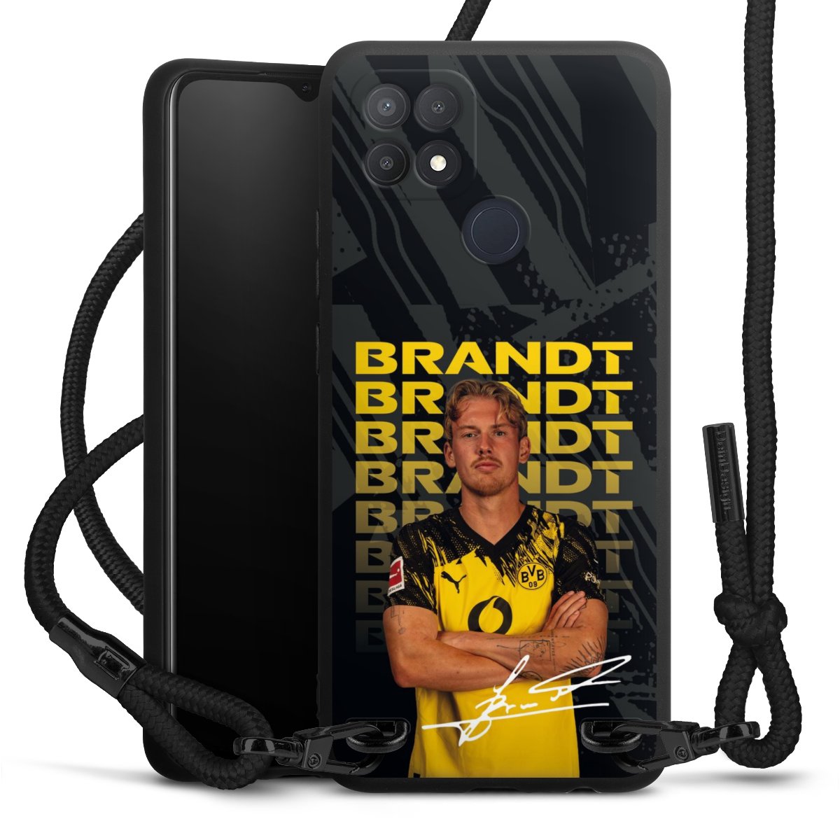 The matt black silicone case is made of flexible TPU (thermoplastic polyurethane) and offers robust protection. The durable, unbreakable material makes the cover flexible and dimensionally stable at the same time. The matte surface makes your design stand out more and is less susceptible to fingerprints and dirt. The stylish trend accessory fits comfortably in the hand and is perfectly complemented by the fabric (polyester) mobile phone strap. The braided fabric strap is approx. 1.70 metres long with a diameter of approx. 0.5 cm. Due to the special knotting technique, the length of the strap can be adjusted by simply pulling it, so that you can adapt it individually to your wishes. The practical case to wear around your neck is available with the fabric strap in black. As a little icing on the cake, we have provided the strap with a chic metal fastener in matt black. The strap is securely fastened to the case with loops made of high-quality genuine leather and press studs. The ends of the fabric strap are covered with metallic end caps and thus protected from fraying.