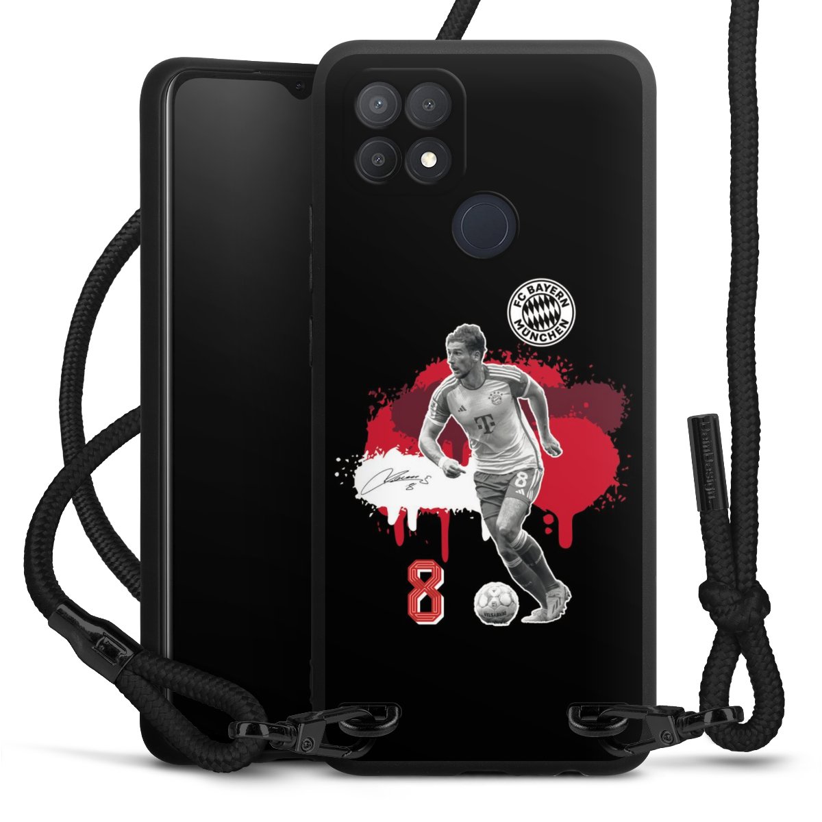 The matt black silicone case is made of flexible TPU (thermoplastic polyurethane) and offers robust protection. The durable, unbreakable material makes the cover flexible and dimensionally stable at the same time. The matte surface makes your design stand out more and is less susceptible to fingerprints and dirt. The stylish trend accessory fits comfortably in the hand and is perfectly complemented by the fabric (polyester) mobile phone strap. The braided fabric strap is approx. 1.70 metres long with a diameter of approx. 0.5 cm. Due to the special knotting technique, the length of the strap can be adjusted by simply pulling it, so that you can adapt it individually to your wishes. The practical case to wear around your neck is available with the fabric strap in black. As a little icing on the cake, we have provided the strap with a chic metal fastener in matt black. The strap is securely fastened to the case with loops made of high-quality genuine leather and press studs. The ends of the fabric strap are covered with metallic end caps and thus protected from fraying.