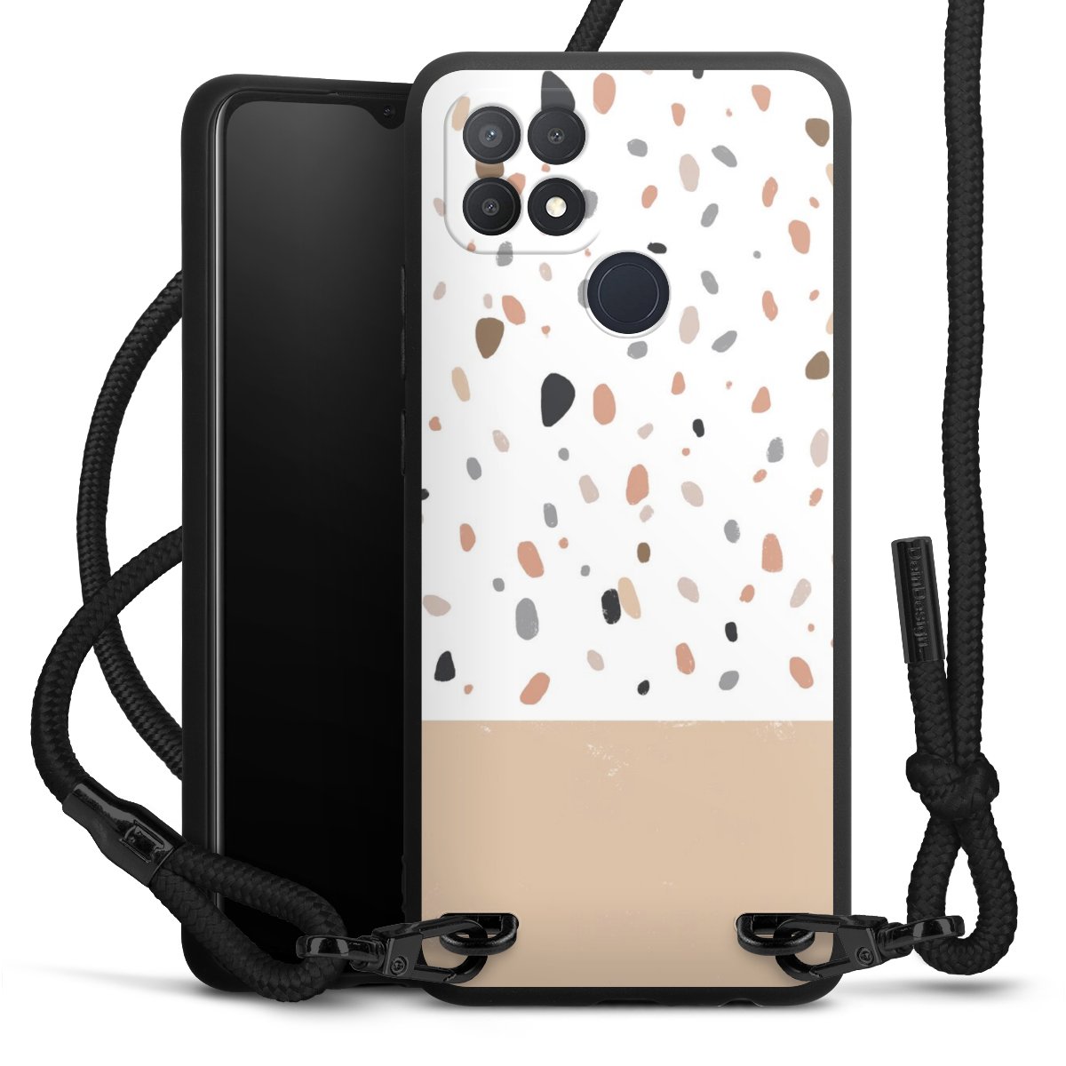 We use the solid direct print process for this phone case, which is why the print area only covers the back and the edge remains unprinted. The case to wear around your neck can be ordered unprinted, fully printed, or partially printed. For your design, either choose one of our exclusive shop motifs or get creative and create your own design, for example with photos and overlays. Design your own personal trend accessory and make an individual statement on the streets!