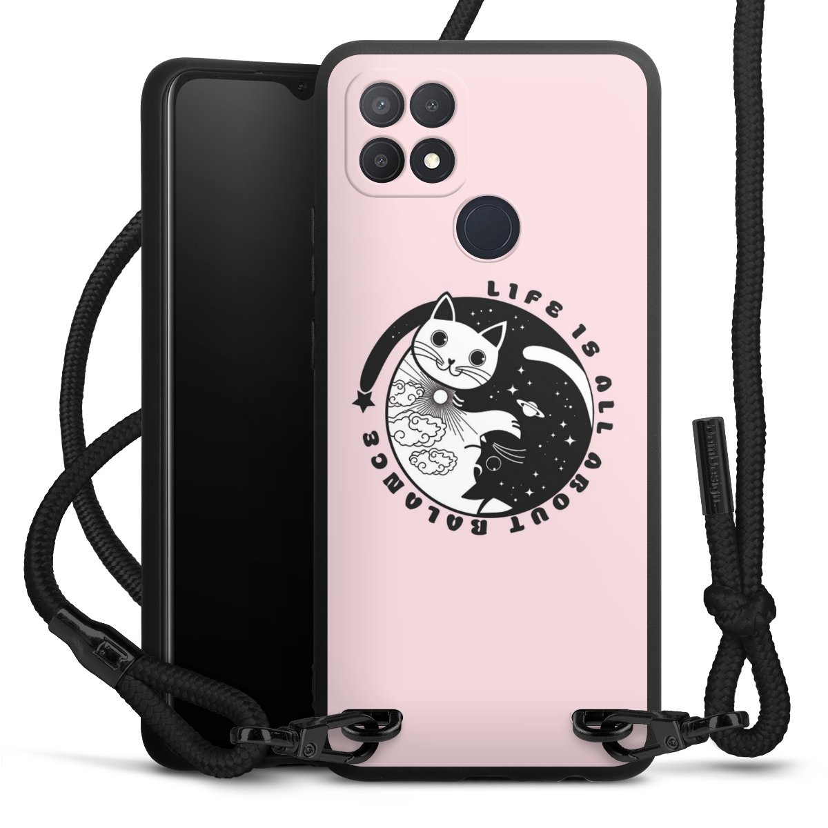 The matt black silicone case is made of flexible TPU (thermoplastic polyurethane) and offers robust protection. The durable, unbreakable material makes the cover flexible and dimensionally stable at the same time. The matte surface makes your design stand out more and is less susceptible to fingerprints and dirt. The stylish trend accessory fits comfortably in the hand and is perfectly complemented by the fabric (polyester) mobile phone strap. The braided fabric strap is approx. 1.70 metres long with a diameter of approx. 0.5 cm. Due to the special knotting technique, the length of the strap can be adjusted by simply pulling it, so that you can adapt it individually to your wishes. The practical case to wear around your neck is available with the fabric strap in black. As a little icing on the cake, we have provided the strap with a chic metal fastener in matt black. The strap is securely fastened to the case with loops made of high-quality genuine leather and press studs. The ends of the fabric strap are covered with metallic end caps and thus protected from fraying.