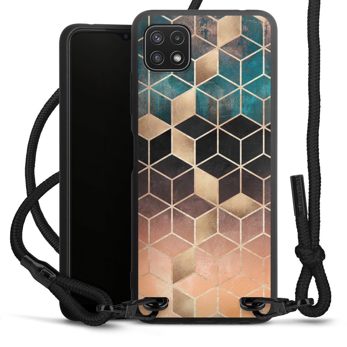 We use the solid direct print process for this phone case, which is why the print area only covers the back and the edge remains unprinted. The case to wear around your neck can be ordered unprinted, fully printed, or partially printed. For your design, either choose one of our exclusive shop motifs or get creative and create your own design, for example with photos and overlays. Design your own personal trend accessory and make an individual statement on the streets!