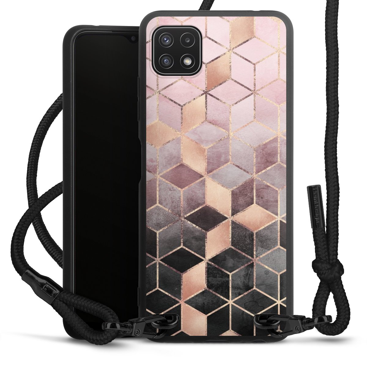 We use the solid direct print process for this phone case, which is why the print area only covers the back and the edge remains unprinted. The case to wear around your neck can be ordered unprinted, fully printed, or partially printed. For your design, either choose one of our exclusive shop motifs or get creative and create your own design, for example with photos and overlays. Design your own personal trend accessory and make an individual statement on the streets!