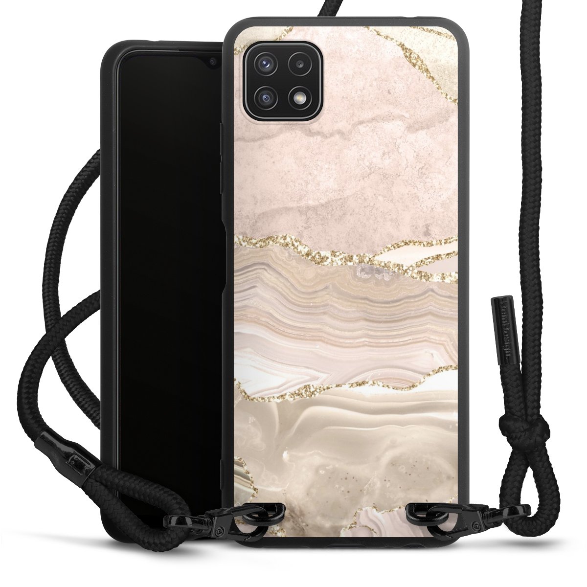We use the solid direct print process for this phone case, which is why the print area only covers the back and the edge remains unprinted. The case to wear around your neck can be ordered unprinted, fully printed, or partially printed. For your design, either choose one of our exclusive shop motifs or get creative and create your own design, for example with photos and overlays. Design your own personal trend accessory and make an individual statement on the streets!