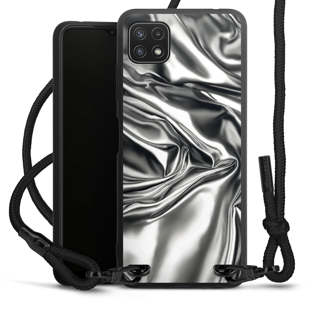 The matt black silicone case is made of flexible TPU (thermoplastic polyurethane) and offers robust protection. The durable, unbreakable material makes the cover flexible and dimensionally stable at the same time. The matte surface makes your design stand out more and is less susceptible to fingerprints and dirt. The stylish trend accessory fits comfortably in the hand and is perfectly complemented by the fabric (polyester) mobile phone strap. The braided fabric strap is approx. 1.70 metres long with a diameter of approx. 0.5 cm. Due to the special knotting technique, the length of the strap can be adjusted by simply pulling it, so that you can adapt it individually to your wishes. The practical case to wear around your neck is available with the fabric strap in black. As a little icing on the cake, we have provided the strap with a chic metal fastener in matt black. The strap is securely fastened to the case with loops made of high-quality genuine leather and press studs. The ends of the fabric strap are covered with metallic end caps and thus protected from fraying.