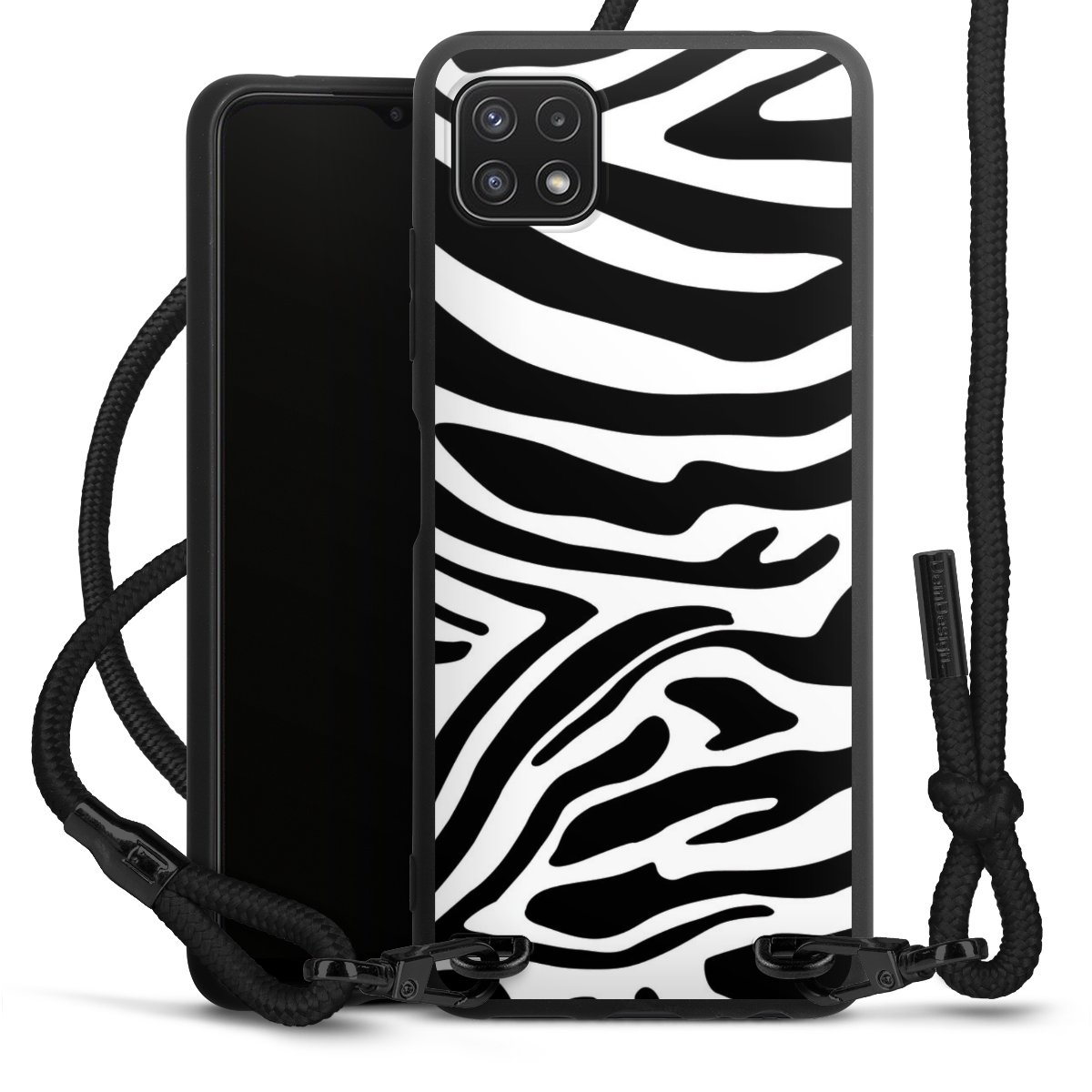 We use the solid direct print process for this phone case, which is why the print area only covers the back and the edge remains unprinted. The case to wear around your neck can be ordered unprinted, fully printed, or partially printed. For your design, either choose one of our exclusive shop motifs or get creative and create your own design, for example with photos and overlays. Design your own personal trend accessory and make an individual statement on the streets!