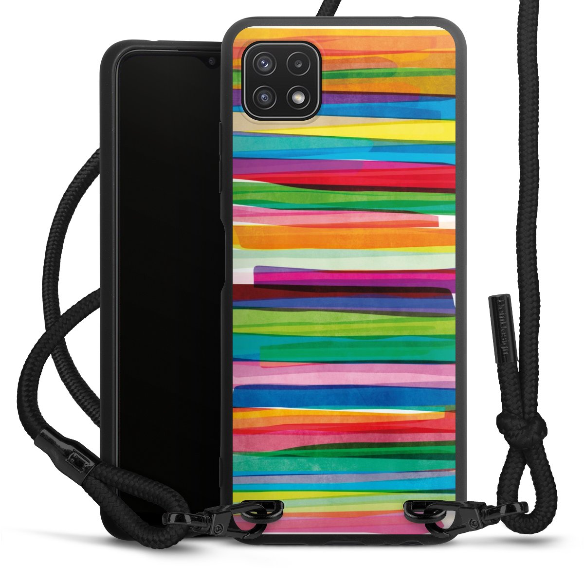 We use the solid direct print process for this phone case, which is why the print area only covers the back and the edge remains unprinted. The case to wear around your neck can be ordered unprinted, fully printed, or partially printed. For your design, either choose one of our exclusive shop motifs or get creative and create your own design, for example with photos and overlays. Design your own personal trend accessory and make an individual statement on the streets!
