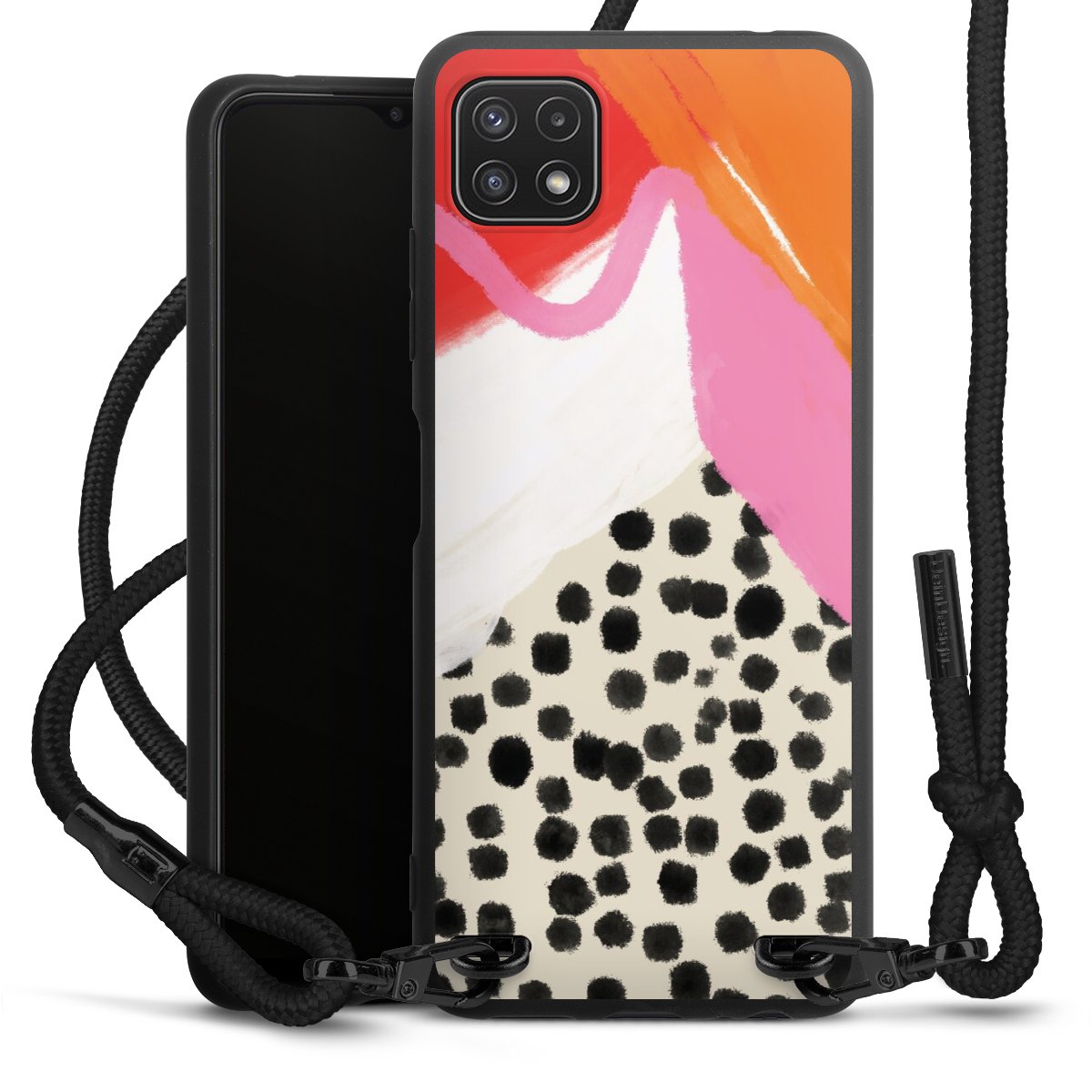 We use the solid direct print process for this phone case, which is why the print area only covers the back and the edge remains unprinted. The case to wear around your neck can be ordered unprinted, fully printed, or partially printed. For your design, either choose one of our exclusive shop motifs or get creative and create your own design, for example with photos and overlays. Design your own personal trend accessory and make an individual statement on the streets!