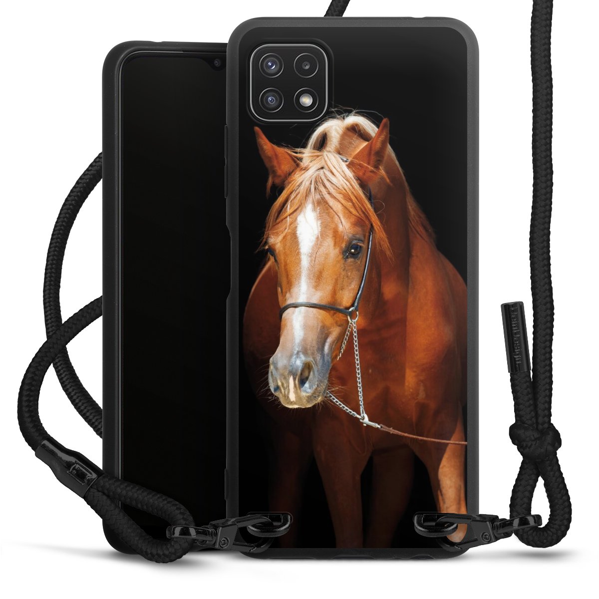 The matt black silicone case is made of flexible TPU (thermoplastic polyurethane) and offers robust protection. The durable, unbreakable material makes the cover flexible and dimensionally stable at the same time. The matte surface makes your design stand out more and is less susceptible to fingerprints and dirt. The stylish trend accessory fits comfortably in the hand and is perfectly complemented by the fabric (polyester) mobile phone strap. The braided fabric strap is approx. 1.70 metres long with a diameter of approx. 0.5 cm. Due to the special knotting technique, the length of the strap can be adjusted by simply pulling it, so that you can adapt it individually to your wishes. The practical case to wear around your neck is available with the fabric strap in black. As a little icing on the cake, we have provided the strap with a chic metal fastener in matt black. The strap is securely fastened to the case with loops made of high-quality genuine leather and press studs. The ends of the fabric strap are covered with metallic end caps and thus protected from fraying.