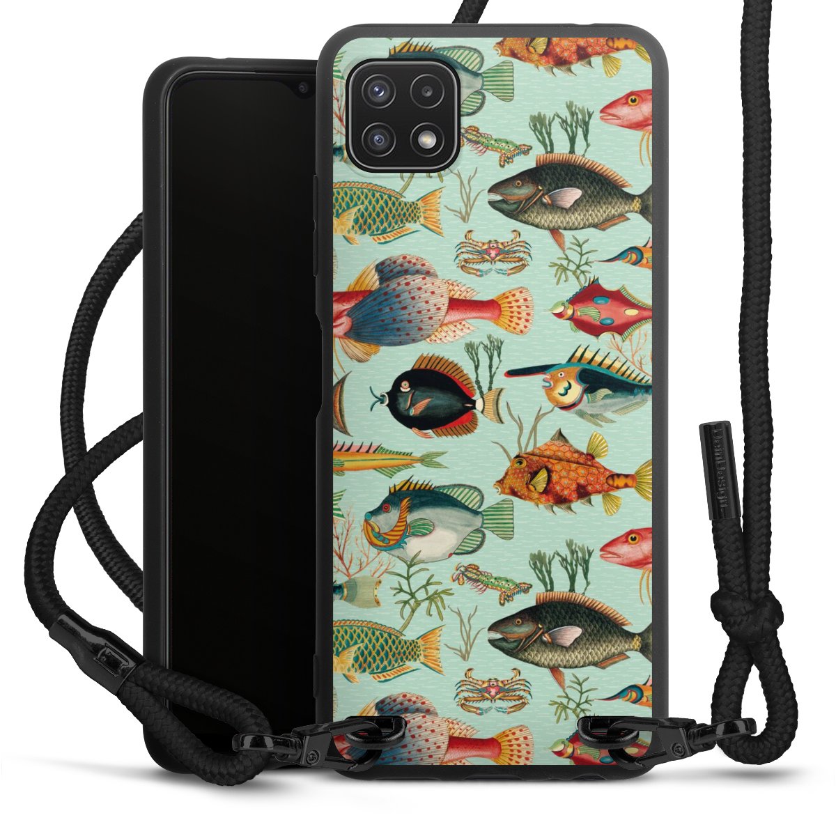 We use the solid direct print process for this phone case, which is why the print area only covers the back and the edge remains unprinted. The case to wear around your neck can be ordered unprinted, fully printed, or partially printed. For your design, either choose one of our exclusive shop motifs or get creative and create your own design, for example with photos and overlays. Design your own personal trend accessory and make an individual statement on the streets!