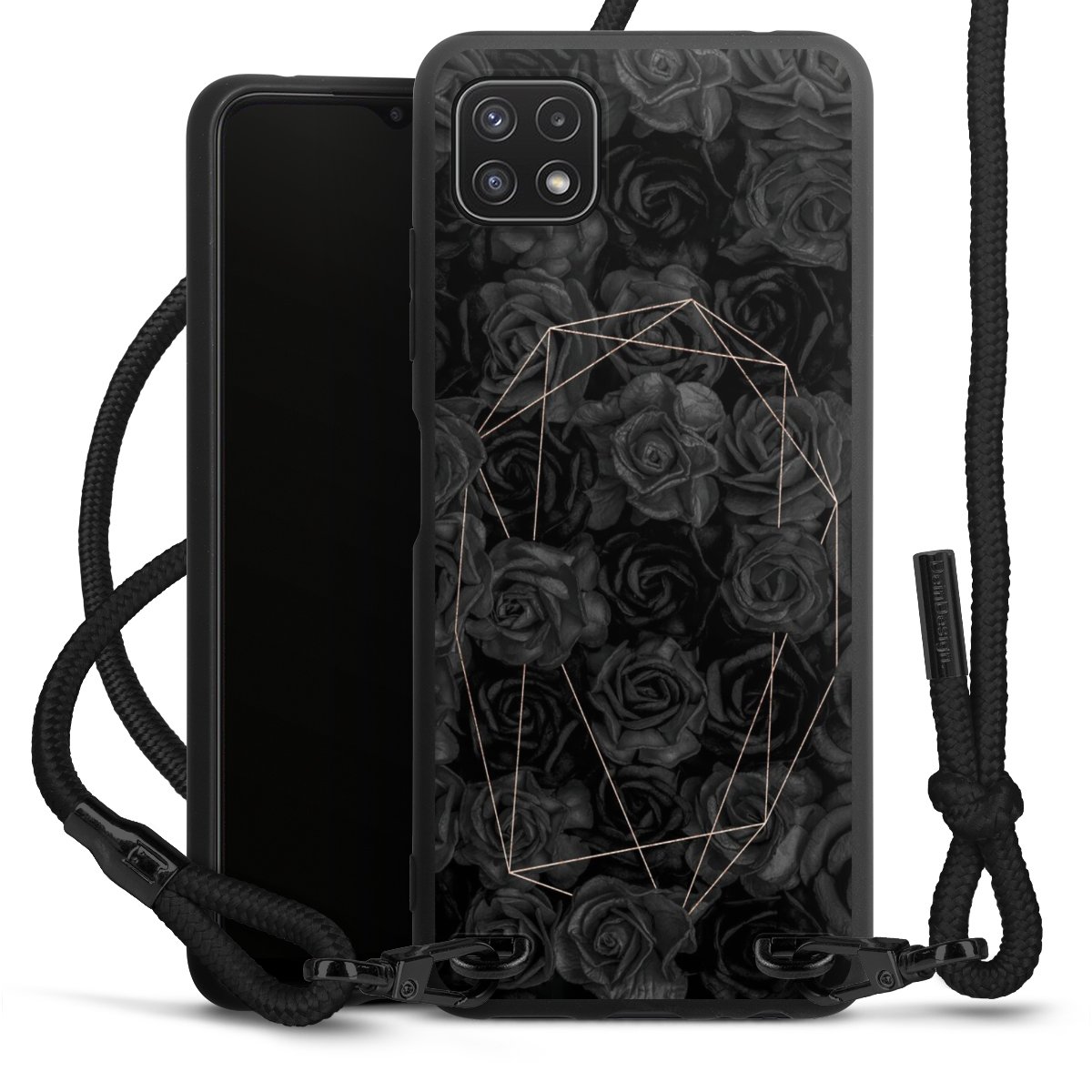 The matt black silicone case is made of flexible TPU (thermoplastic polyurethane) and offers robust protection. The durable, unbreakable material makes the cover flexible and dimensionally stable at the same time. The matte surface makes your design stand out more and is less susceptible to fingerprints and dirt. The stylish trend accessory fits comfortably in the hand and is perfectly complemented by the fabric (polyester) mobile phone strap. The braided fabric strap is approx. 1.70 metres long with a diameter of approx. 0.5 cm. Due to the special knotting technique, the length of the strap can be adjusted by simply pulling it, so that you can adapt it individually to your wishes. The practical case to wear around your neck is available with the fabric strap in black. As a little icing on the cake, we have provided the strap with a chic metal fastener in matt black. The strap is securely fastened to the case with loops made of high-quality genuine leather and press studs. The ends of the fabric strap are covered with metallic end caps and thus protected from fraying.