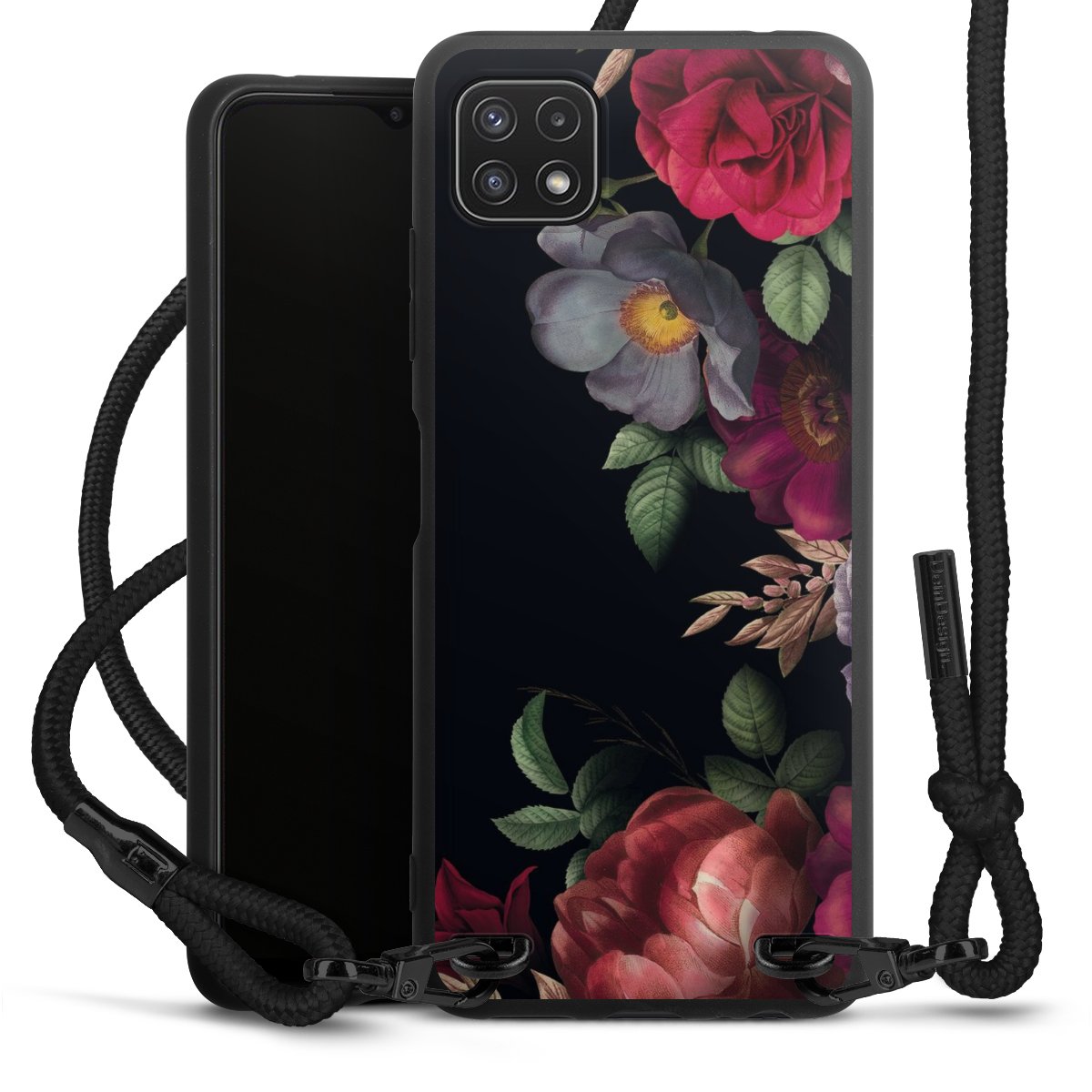 The matt black silicone case is made of flexible TPU (thermoplastic polyurethane) and offers robust protection. The durable, unbreakable material makes the cover flexible and dimensionally stable at the same time. The matte surface makes your design stand out more and is less susceptible to fingerprints and dirt. The stylish trend accessory fits comfortably in the hand and is perfectly complemented by the fabric (polyester) mobile phone strap. The braided fabric strap is approx. 1.70 metres long with a diameter of approx. 0.5 cm. Due to the special knotting technique, the length of the strap can be adjusted by simply pulling it, so that you can adapt it individually to your wishes. The practical case to wear around your neck is available with the fabric strap in black. As a little icing on the cake, we have provided the strap with a chic metal fastener in matt black. The strap is securely fastened to the case with loops made of high-quality genuine leather and press studs. The ends of the fabric strap are covered with metallic end caps and thus protected from fraying.