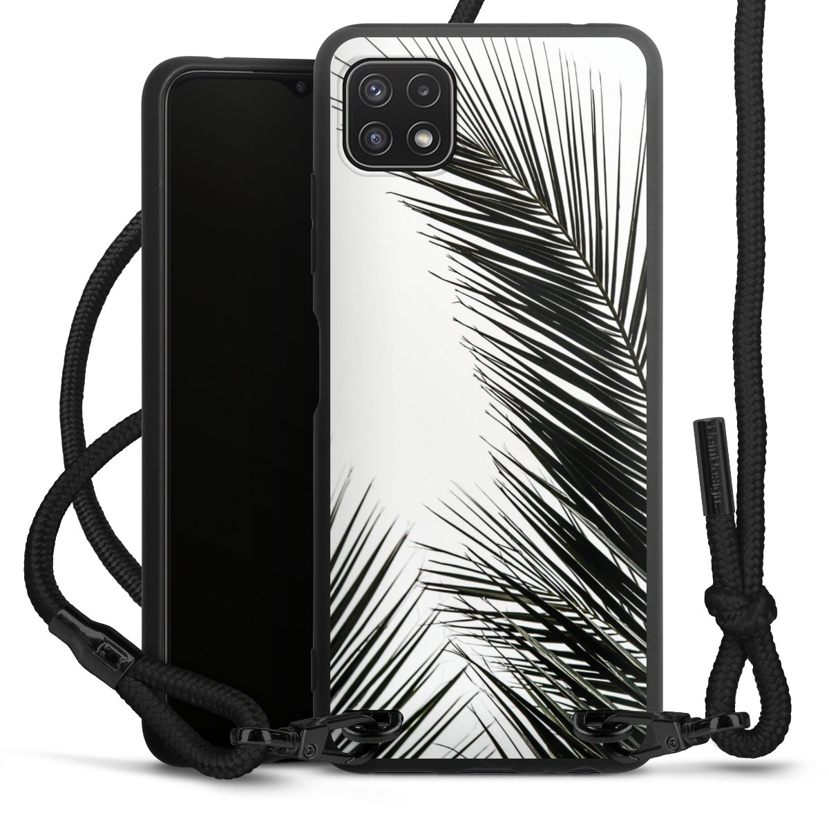 We use the solid direct print process for this phone case, which is why the print area only covers the back and the edge remains unprinted. The case to wear around your neck can be ordered unprinted, fully printed, or partially printed. For your design, either choose one of our exclusive shop motifs or get creative and create your own design, for example with photos and overlays. Design your own personal trend accessory and make an individual statement on the streets!