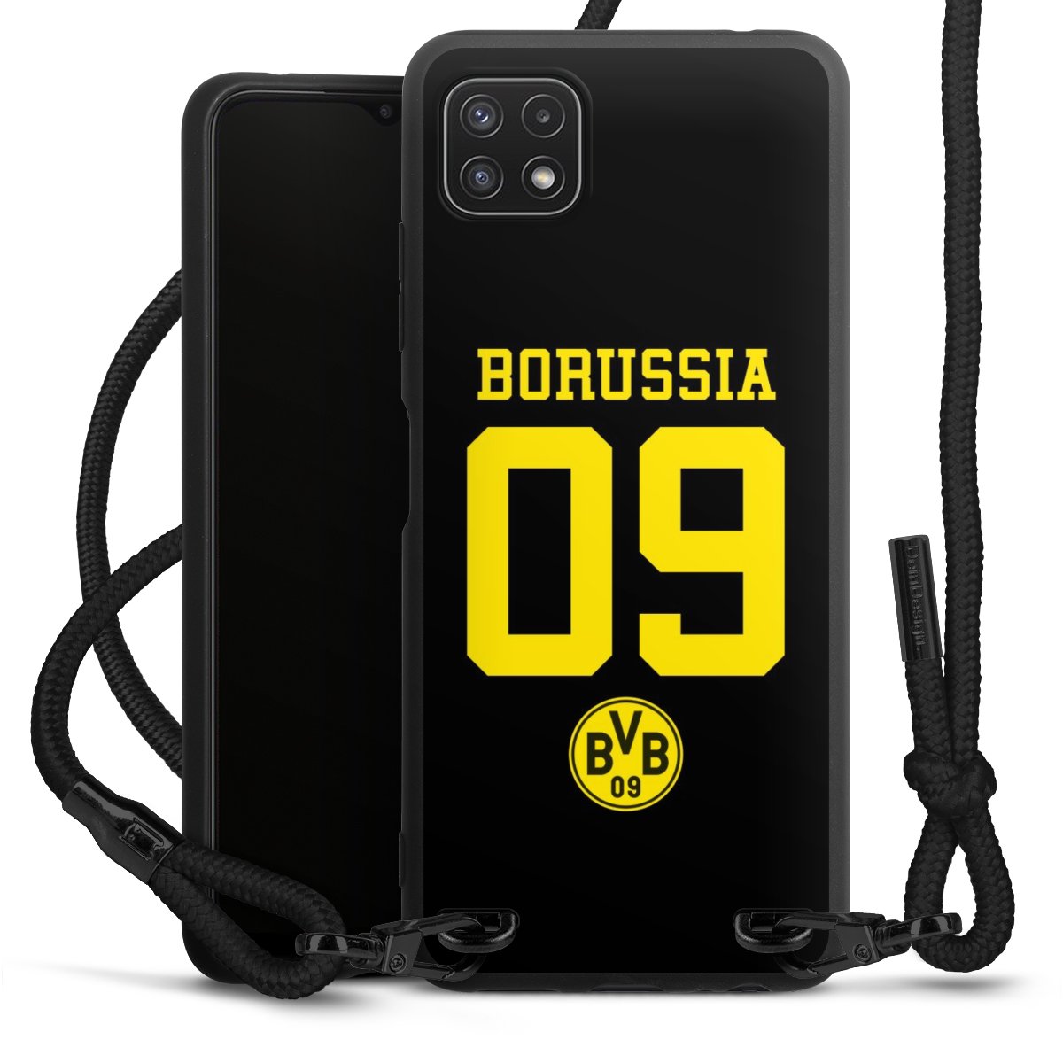 The matt black silicone case is made of flexible TPU (thermoplastic polyurethane) and offers robust protection. The durable, unbreakable material makes the cover flexible and dimensionally stable at the same time. The matte surface makes your design stand out more and is less susceptible to fingerprints and dirt. The stylish trend accessory fits comfortably in the hand and is perfectly complemented by the fabric (polyester) mobile phone strap. The braided fabric strap is approx. 1.70 metres long with a diameter of approx. 0.5 cm. Due to the special knotting technique, the length of the strap can be adjusted by simply pulling it, so that you can adapt it individually to your wishes. The practical case to wear around your neck is available with the fabric strap in black. As a little icing on the cake, we have provided the strap with a chic metal fastener in matt black. The strap is securely fastened to the case with loops made of high-quality genuine leather and press studs. The ends of the fabric strap are covered with metallic end caps and thus protected from fraying.