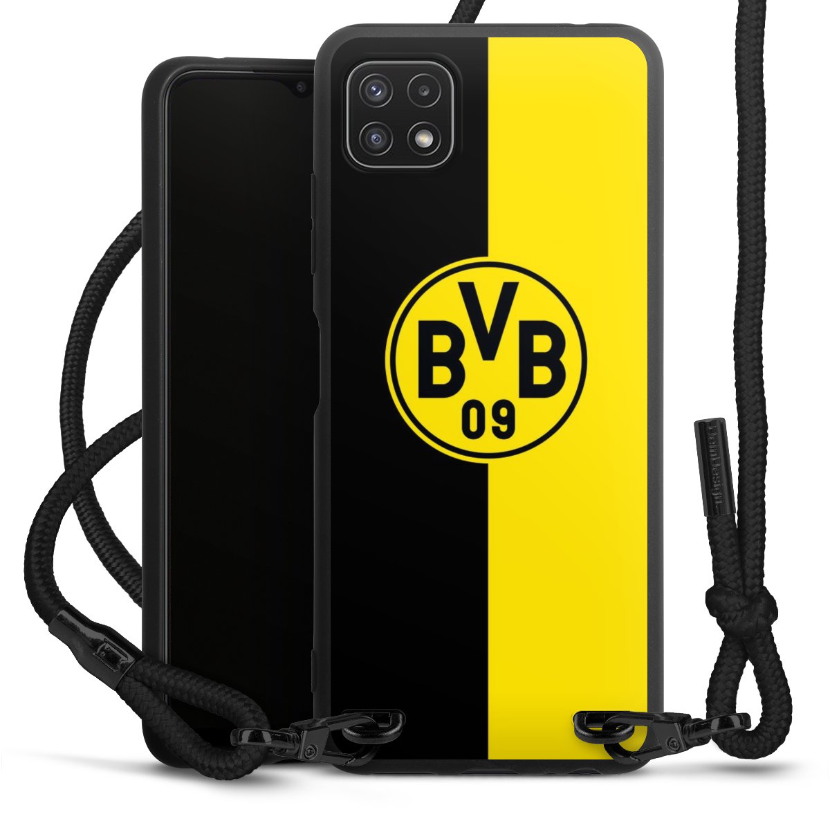 The matt black silicone case is made of flexible TPU (thermoplastic polyurethane) and offers robust protection. The durable, unbreakable material makes the cover flexible and dimensionally stable at the same time. The matte surface makes your design stand out more and is less susceptible to fingerprints and dirt. The stylish trend accessory fits comfortably in the hand and is perfectly complemented by the fabric (polyester) mobile phone strap. The braided fabric strap is approx. 1.70 metres long with a diameter of approx. 0.5 cm. Due to the special knotting technique, the length of the strap can be adjusted by simply pulling it, so that you can adapt it individually to your wishes. The practical case to wear around your neck is available with the fabric strap in black. As a little icing on the cake, we have provided the strap with a chic metal fastener in matt black. The strap is securely fastened to the case with loops made of high-quality genuine leather and press studs. The ends of the fabric strap are covered with metallic end caps and thus protected from fraying.