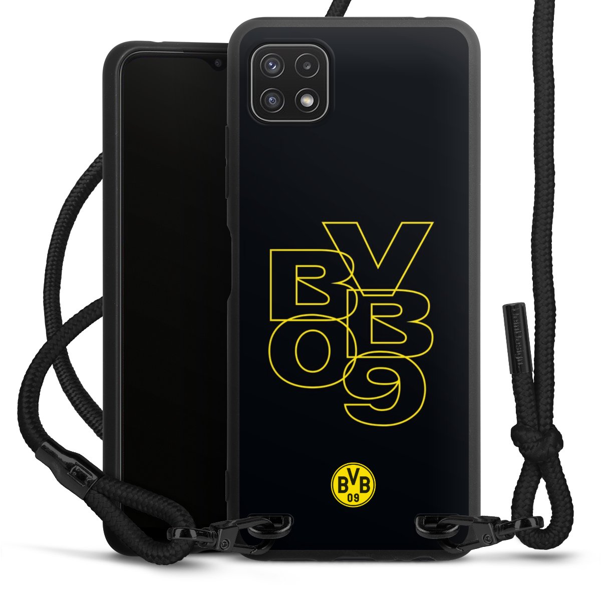The matt black silicone case is made of flexible TPU (thermoplastic polyurethane) and offers robust protection. The durable, unbreakable material makes the cover flexible and dimensionally stable at the same time. The matte surface makes your design stand out more and is less susceptible to fingerprints and dirt. The stylish trend accessory fits comfortably in the hand and is perfectly complemented by the fabric (polyester) mobile phone strap. The braided fabric strap is approx. 1.70 metres long with a diameter of approx. 0.5 cm. Due to the special knotting technique, the length of the strap can be adjusted by simply pulling it, so that you can adapt it individually to your wishes. The practical case to wear around your neck is available with the fabric strap in black. As a little icing on the cake, we have provided the strap with a chic metal fastener in matt black. The strap is securely fastened to the case with loops made of high-quality genuine leather and press studs. The ends of the fabric strap are covered with metallic end caps and thus protected from fraying.