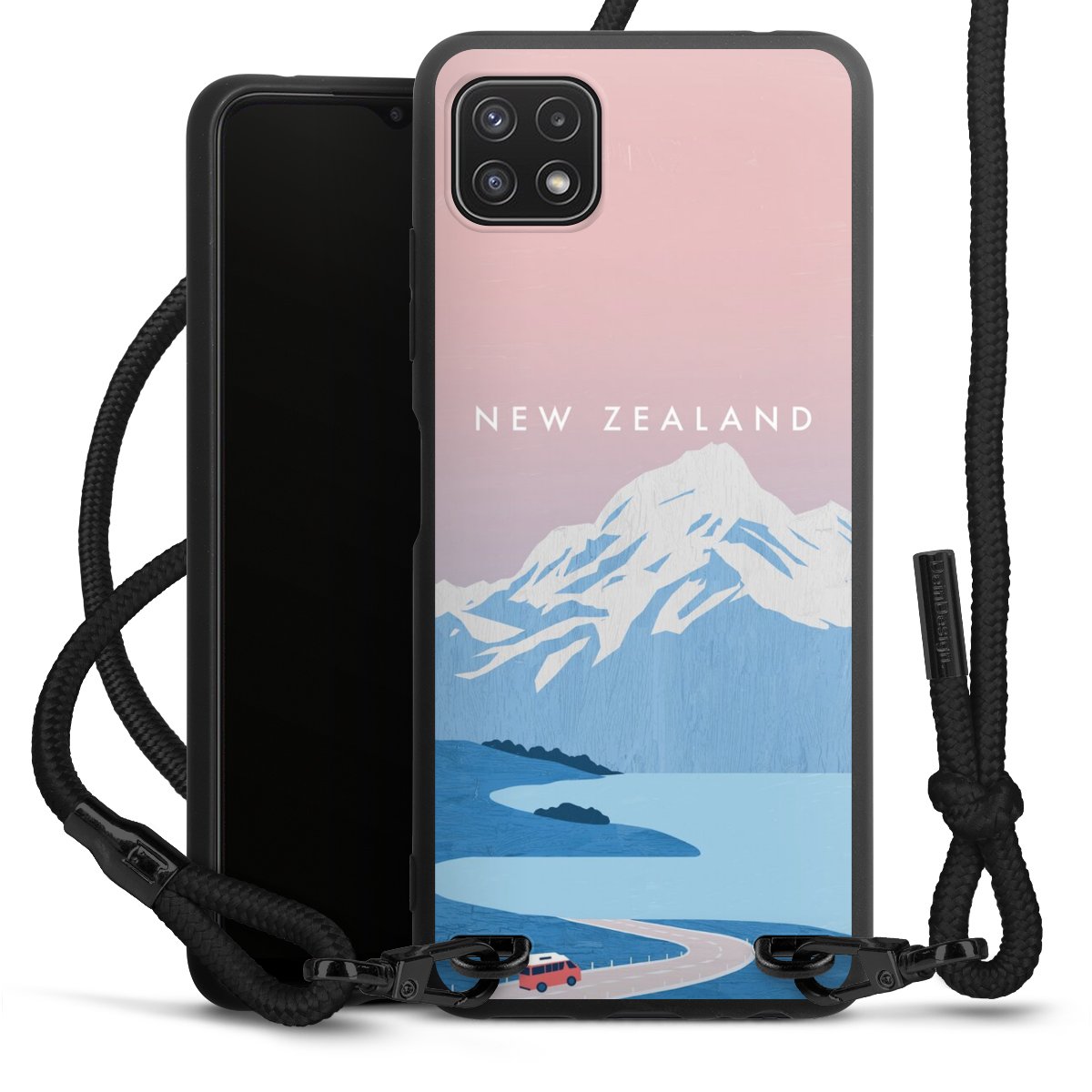 We use the solid direct print process for this phone case, which is why the print area only covers the back and the edge remains unprinted. The case to wear around your neck can be ordered unprinted, fully printed, or partially printed. For your design, either choose one of our exclusive shop motifs or get creative and create your own design, for example with photos and overlays. Design your own personal trend accessory and make an individual statement on the streets!