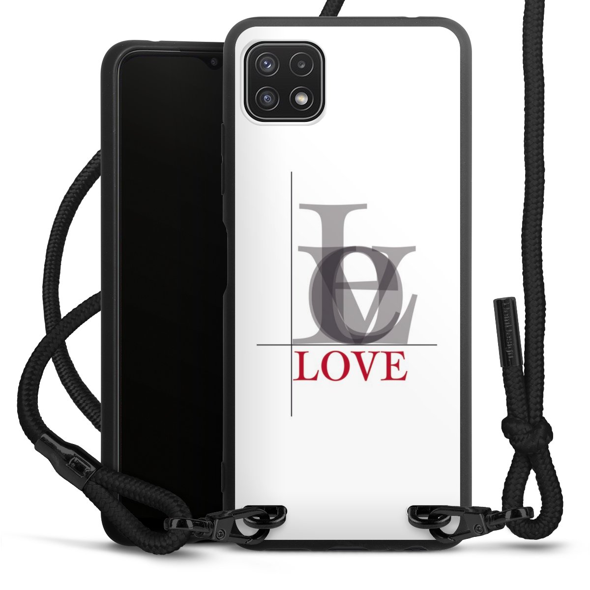 We use the solid direct print process for this phone case, which is why the print area only covers the back and the edge remains unprinted. The case to wear around your neck can be ordered unprinted, fully printed, or partially printed. For your design, either choose one of our exclusive shop motifs or get creative and create your own design, for example with photos and overlays. Design your own personal trend accessory and make an individual statement on the streets!