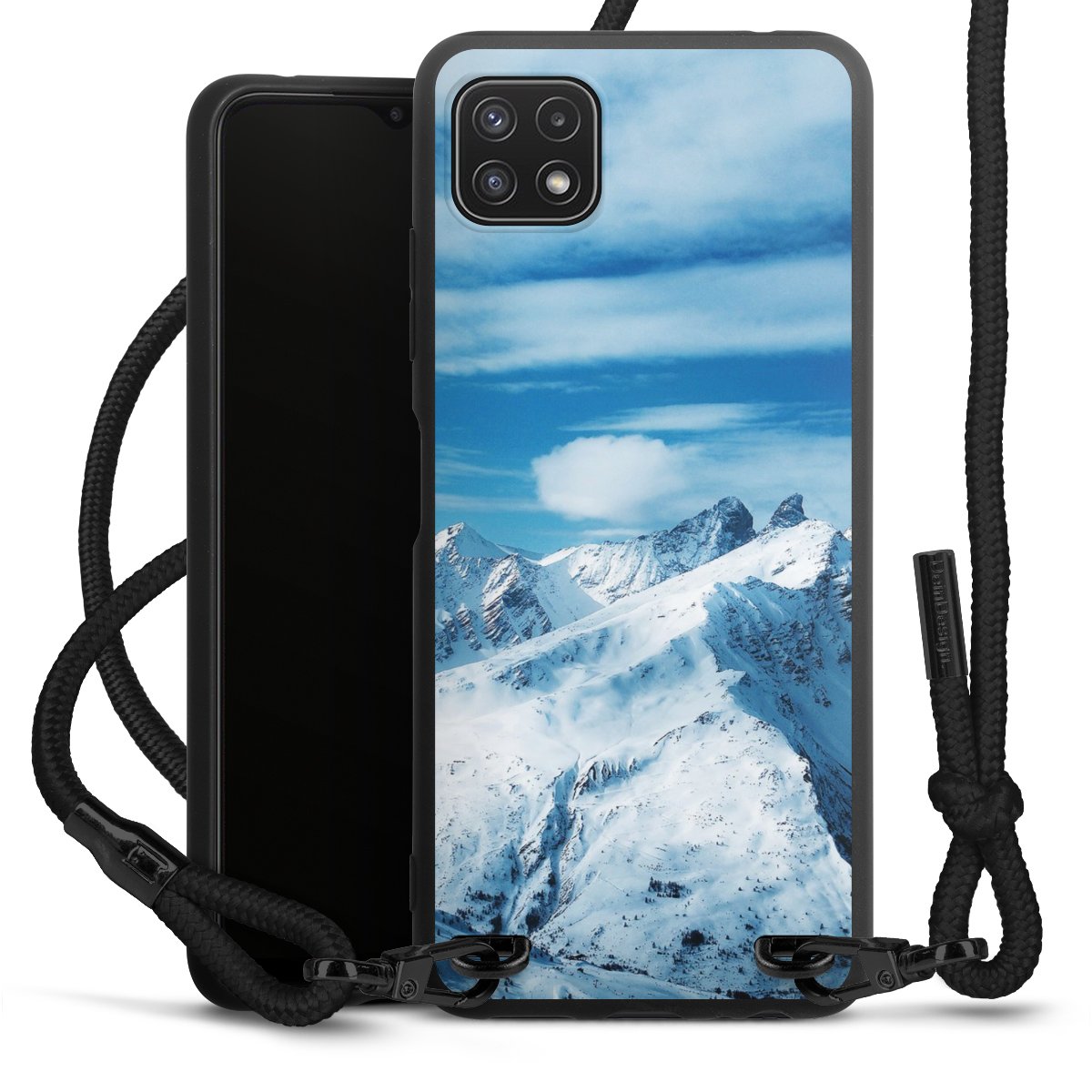 We use the solid direct print process for this phone case, which is why the print area only covers the back and the edge remains unprinted. The case to wear around your neck can be ordered unprinted, fully printed, or partially printed. For your design, either choose one of our exclusive shop motifs or get creative and create your own design, for example with photos and overlays. Design your own personal trend accessory and make an individual statement on the streets!