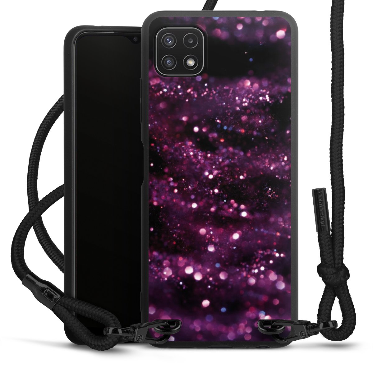 We use the solid direct print process for this phone case, which is why the print area only covers the back and the edge remains unprinted. The case to wear around your neck can be ordered unprinted, fully printed, or partially printed. For your design, either choose one of our exclusive shop motifs or get creative and create your own design, for example with photos and overlays. Design your own personal trend accessory and make an individual statement on the streets!