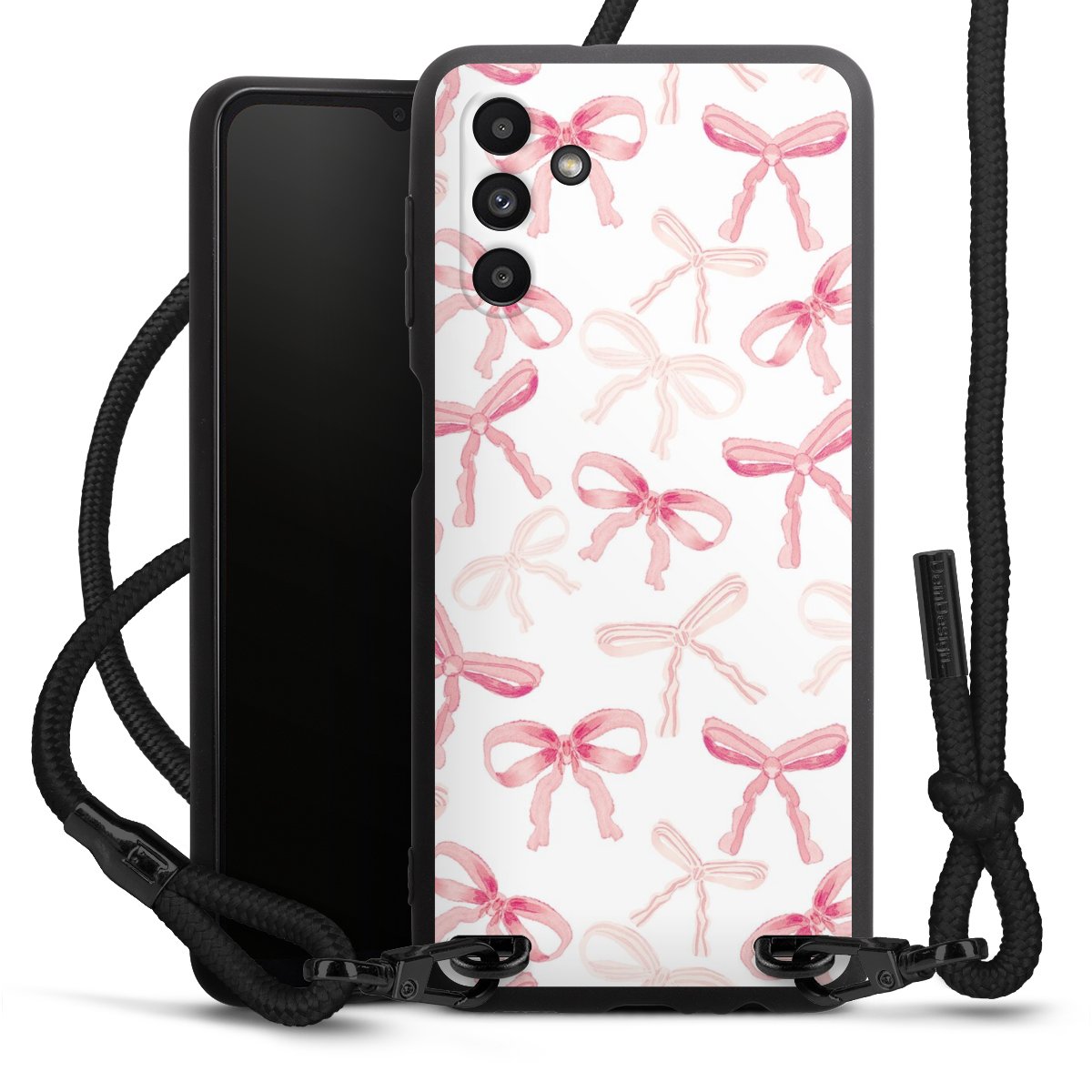 The matt black silicone case is made of flexible TPU (thermoplastic polyurethane) and offers robust protection. The durable, unbreakable material makes the cover flexible and dimensionally stable at the same time. The matte surface makes your design stand out more and is less susceptible to fingerprints and dirt. The stylish trend accessory fits comfortably in the hand and is perfectly complemented by the fabric (polyester) mobile phone strap. The braided fabric strap is approx. 1.70 metres long with a diameter of approx. 0.5 cm. Due to the special knotting technique, the length of the strap can be adjusted by simply pulling it, so that you can adapt it individually to your wishes. The practical case to wear around your neck is available with the fabric strap in black. As a little icing on the cake, we have provided the strap with a chic metal fastener in matt black. The strap is securely fastened to the case with loops made of high-quality genuine leather and press studs. The ends of the fabric strap are covered with metallic end caps and thus protected from fraying.