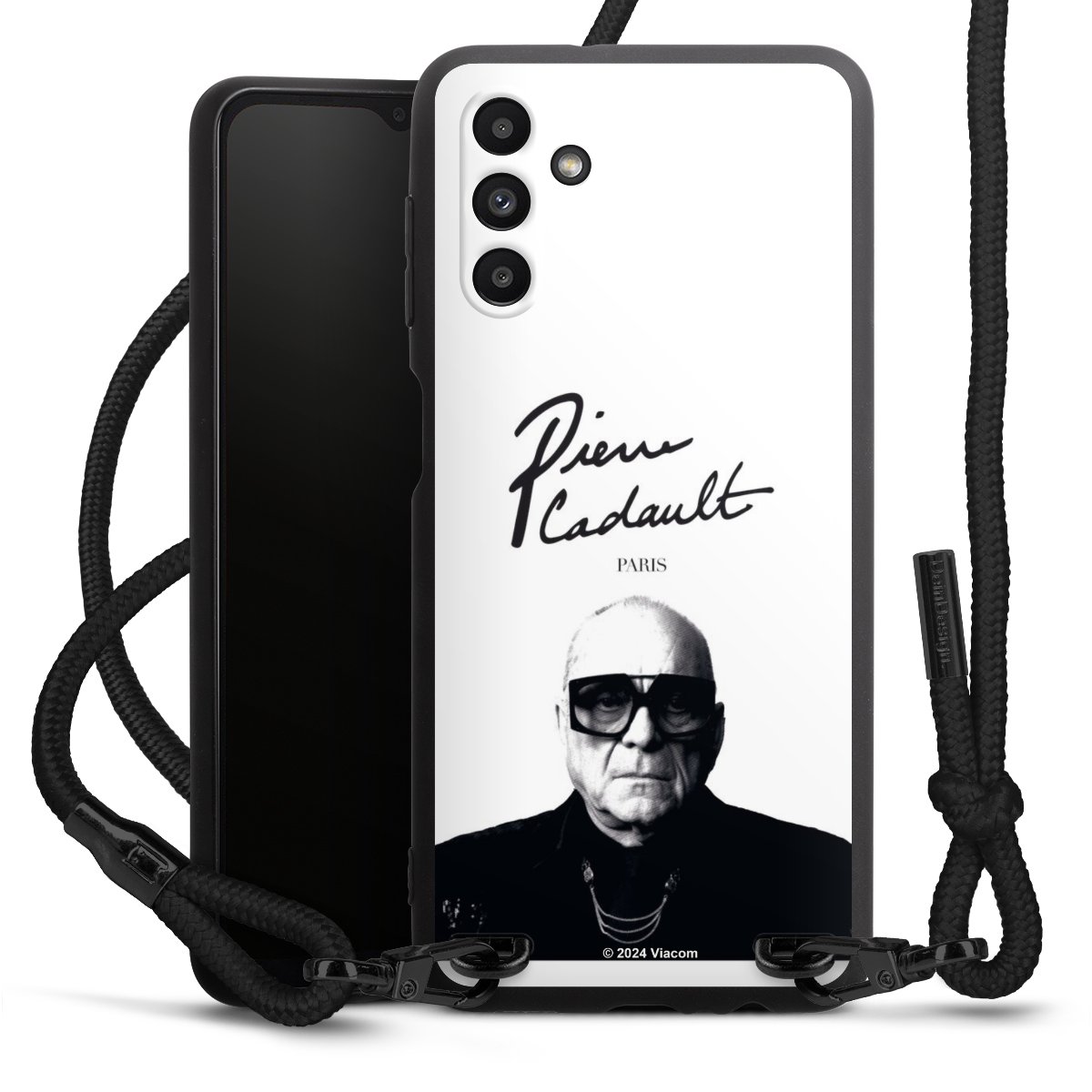The matt black silicone case is made of flexible TPU (thermoplastic polyurethane) and offers robust protection. The durable, unbreakable material makes the cover flexible and dimensionally stable at the same time. The matte surface makes your design stand out more and is less susceptible to fingerprints and dirt. The stylish trend accessory fits comfortably in the hand and is perfectly complemented by the fabric (polyester) mobile phone strap. The braided fabric strap is approx. 1.70 metres long with a diameter of approx. 0.5 cm. Due to the special knotting technique, the length of the strap can be adjusted by simply pulling it, so that you can adapt it individually to your wishes. The practical case to wear around your neck is available with the fabric strap in black. As a little icing on the cake, we have provided the strap with a chic metal fastener in matt black. The strap is securely fastened to the case with loops made of high-quality genuine leather and press studs. The ends of the fabric strap are covered with metallic end caps and thus protected from fraying.