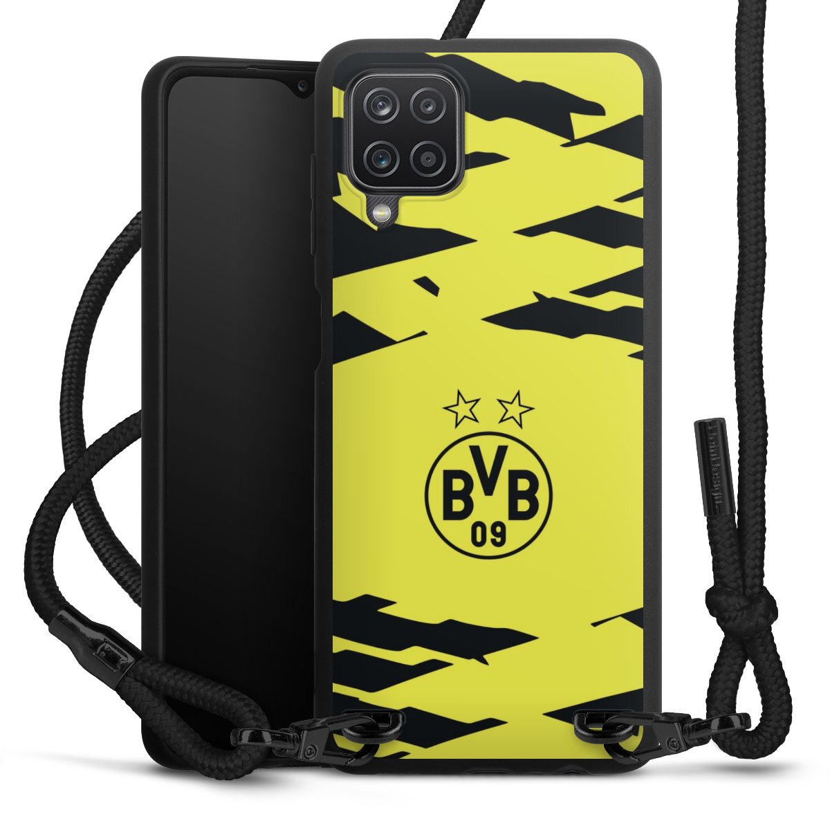 The matt black silicone case is made of flexible TPU (thermoplastic polyurethane) and offers robust protection. The durable, unbreakable material makes the cover flexible and dimensionally stable at the same time. The matte surface makes your design stand out more and is less susceptible to fingerprints and dirt. The stylish trend accessory fits comfortably in the hand and is perfectly complemented by the fabric (polyester) mobile phone strap. The braided fabric strap is approx. 1.70 metres long with a diameter of approx. 0.5 cm. Due to the special knotting technique, the length of the strap can be adjusted by simply pulling it, so that you can adapt it individually to your wishes. The practical case to wear around your neck is available with the fabric strap in black. As a little icing on the cake, we have provided the strap with a chic metal fastener in matt black. The strap is securely fastened to the case with loops made of high-quality genuine leather and press studs. The ends of the fabric strap are covered with metallic end caps and thus protected from fraying.