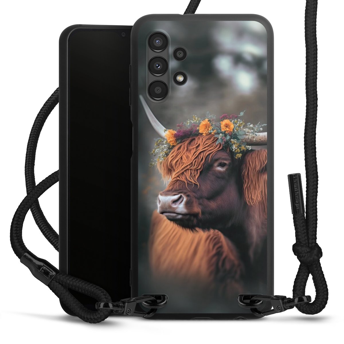 The matt black silicone case is made of flexible TPU (thermoplastic polyurethane) and offers robust protection. The durable, unbreakable material makes the cover flexible and dimensionally stable at the same time. The matte surface makes your design stand out more and is less susceptible to fingerprints and dirt. The stylish trend accessory fits comfortably in the hand and is perfectly complemented by the fabric (polyester) mobile phone strap. The braided fabric strap is approx. 1.70 metres long with a diameter of approx. 0.5 cm. Due to the special knotting technique, the length of the strap can be adjusted by simply pulling it, so that you can adapt it individually to your wishes. The practical case to wear around your neck is available with the fabric strap in black. As a little icing on the cake, we have provided the strap with a chic metal fastener in matt black. The strap is securely fastened to the case with loops made of high-quality genuine leather and press studs. The ends of the fabric strap are covered with metallic end caps and thus protected from fraying.