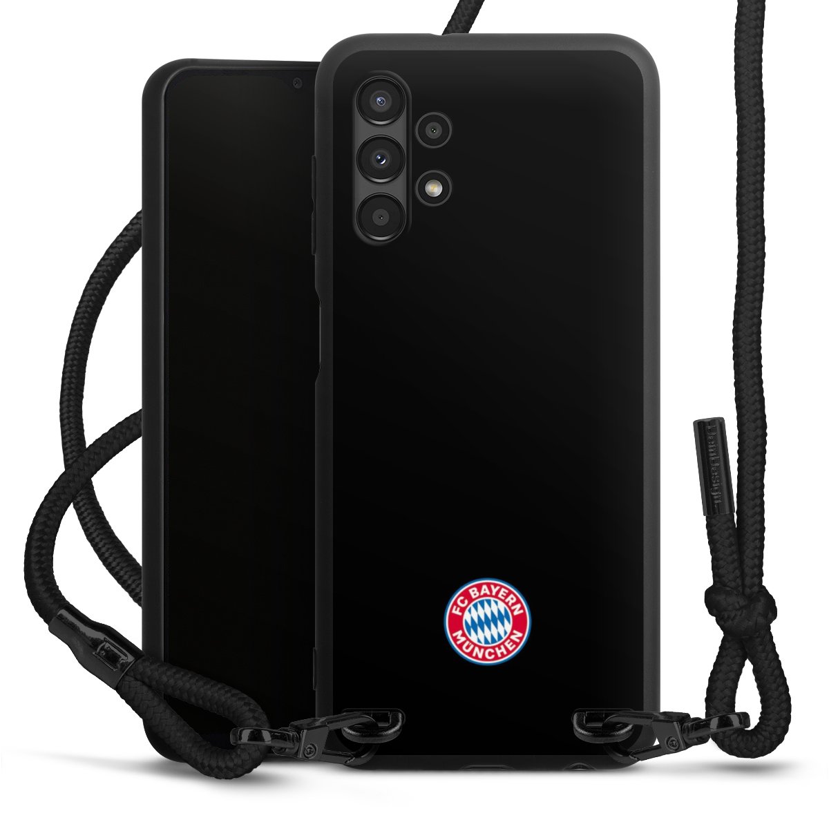 The matt black silicone case is made of flexible TPU (thermoplastic polyurethane) and offers robust protection. The durable, unbreakable material makes the cover flexible and dimensionally stable at the same time. The matte surface makes your design stand out more and is less susceptible to fingerprints and dirt. The stylish trend accessory fits comfortably in the hand and is perfectly complemented by the fabric (polyester) mobile phone strap. The braided fabric strap is approx. 1.70 metres long with a diameter of approx. 0.5 cm. Due to the special knotting technique, the length of the strap can be adjusted by simply pulling it, so that you can adapt it individually to your wishes. The practical case to wear around your neck is available with the fabric strap in black. As a little icing on the cake, we have provided the strap with a chic metal fastener in matt black. The strap is securely fastened to the case with loops made of high-quality genuine leather and press studs. The ends of the fabric strap are covered with metallic end caps and thus protected from fraying.
