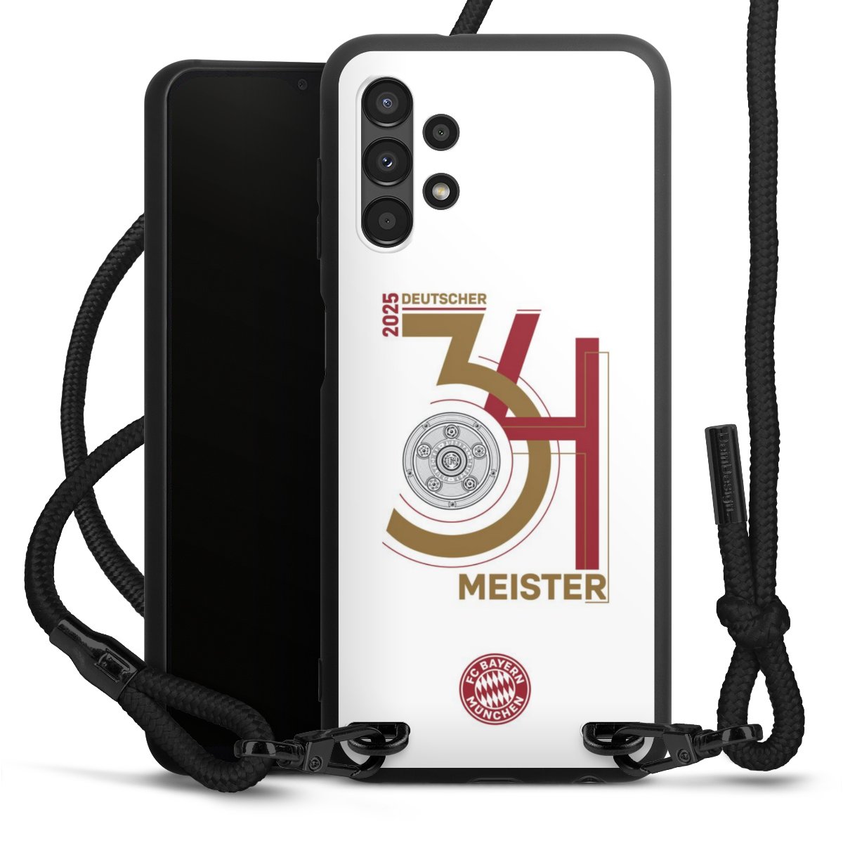 The matt black silicone case is made of flexible TPU (thermoplastic polyurethane) and offers robust protection. The durable, unbreakable material makes the cover flexible and dimensionally stable at the same time. The matte surface makes your design stand out more and is less susceptible to fingerprints and dirt. The stylish trend accessory fits comfortably in the hand and is perfectly complemented by the fabric (polyester) mobile phone strap. The braided fabric strap is approx. 1.70 metres long with a diameter of approx. 0.5 cm. Due to the special knotting technique, the length of the strap can be adjusted by simply pulling it, so that you can adapt it individually to your wishes. The practical case to wear around your neck is available with the fabric strap in black. As a little icing on the cake, we have provided the strap with a chic metal fastener in matt black. The strap is securely fastened to the case with loops made of high-quality genuine leather and press studs. The ends of the fabric strap are covered with metallic end caps and thus protected from fraying.