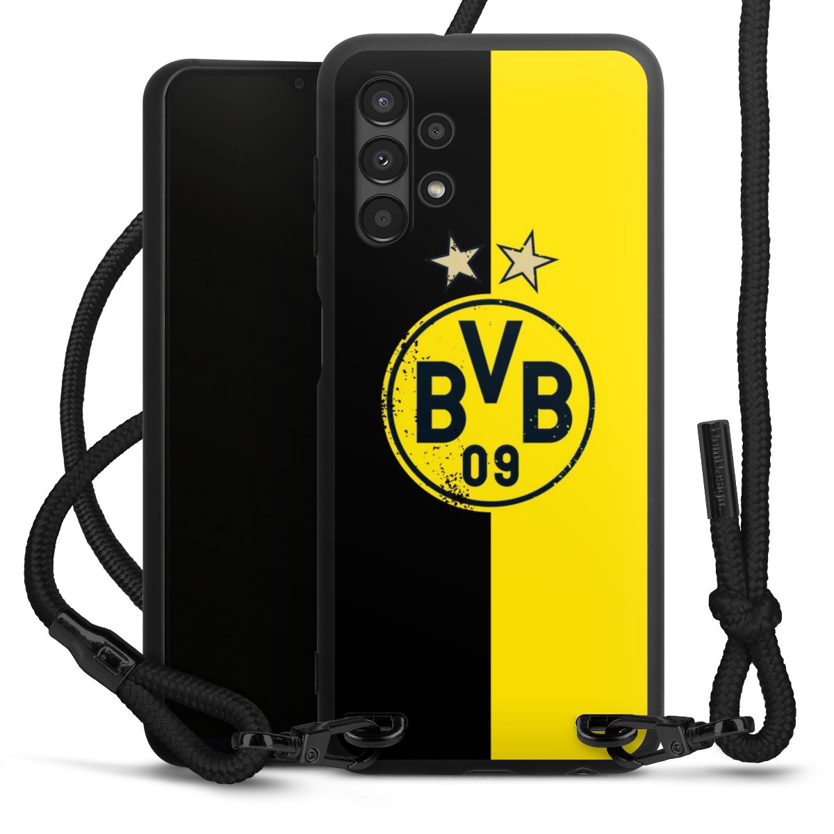 The matt black silicone case is made of flexible TPU (thermoplastic polyurethane) and offers robust protection. The durable, unbreakable material makes the cover flexible and dimensionally stable at the same time. The matte surface makes your design stand out more and is less susceptible to fingerprints and dirt. The stylish trend accessory fits comfortably in the hand and is perfectly complemented by the fabric (polyester) mobile phone strap. The braided fabric strap is approx. 1.70 metres long with a diameter of approx. 0.5 cm. Due to the special knotting technique, the length of the strap can be adjusted by simply pulling it, so that you can adapt it individually to your wishes. The practical case to wear around your neck is available with the fabric strap in black. As a little icing on the cake, we have provided the strap with a chic metal fastener in matt black. The strap is securely fastened to the case with loops made of high-quality genuine leather and press studs. The ends of the fabric strap are covered with metallic end caps and thus protected from fraying.
