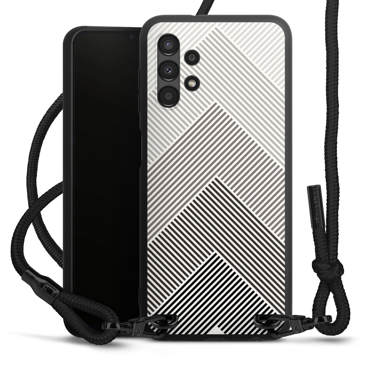 We use the solid direct print process for this phone case, which is why the print area only covers the back and the edge remains unprinted. The case to wear around your neck can be ordered unprinted, fully printed, or partially printed. For your design, either choose one of our exclusive shop motifs or get creative and create your own design, for example with photos and overlays. Design your own personal trend accessory and make an individual statement on the streets!