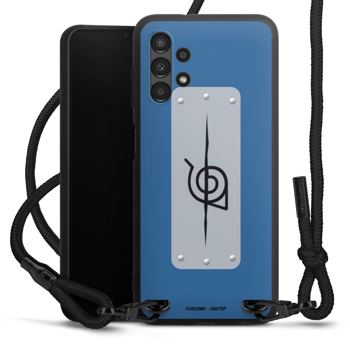 The matt black silicone case is made of flexible TPU (thermoplastic polyurethane) and offers robust protection. The durable, unbreakable material makes the cover flexible and dimensionally stable at the same time. The matte surface makes your design stand out more and is less susceptible to fingerprints and dirt. The stylish trend accessory fits comfortably in the hand and is perfectly complemented by the fabric (polyester) mobile phone strap. The braided fabric strap is approx. 1.70 metres long with a diameter of approx. 0.5 cm. Due to the special knotting technique, the length of the strap can be adjusted by simply pulling it, so that you can adapt it individually to your wishes. The practical case to wear around your neck is available with the fabric strap in black. As a little icing on the cake, we have provided the strap with a chic metal fastener in matt black. The strap is securely fastened to the case with loops made of high-quality genuine leather and press studs. The ends of the fabric strap are covered with metallic end caps and thus protected from fraying.