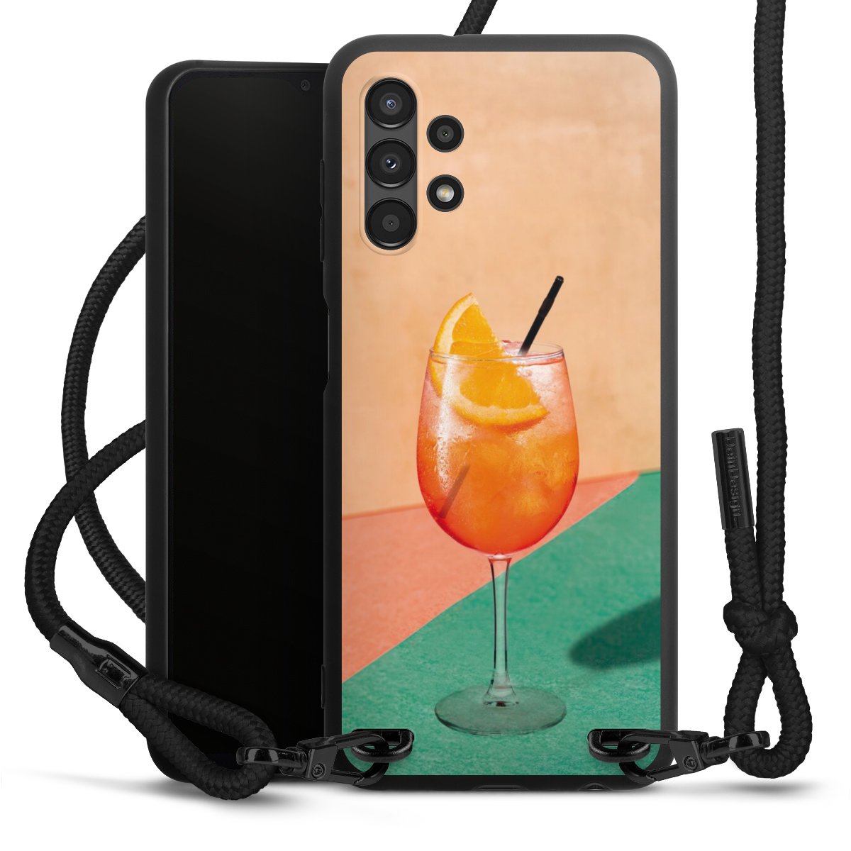 We use the solid direct print process for this phone case, which is why the print area only covers the back and the edge remains unprinted. The case to wear around your neck can be ordered unprinted, fully printed, or partially printed. For your design, either choose one of our exclusive shop motifs or get creative and create your own design, for example with photos and overlays. Design your own personal trend accessory and make an individual statement on the streets!