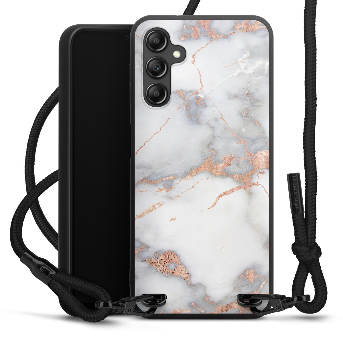 The matt black silicone case is made of flexible TPU (thermoplastic polyurethane) and offers robust protection. The durable, unbreakable material makes the cover flexible and dimensionally stable at the same time. The matte surface makes your design stand out more and is less susceptible to fingerprints and dirt. The stylish trend accessory fits comfortably in the hand and is perfectly complemented by the fabric (polyester) mobile phone strap. The braided fabric strap is approx. 1.70 metres long with a diameter of approx. 0.5 cm. Due to the special knotting technique, the length of the strap can be adjusted by simply pulling it, so that you can adapt it individually to your wishes. The practical case to wear around your neck is available with the fabric strap in black. As a little icing on the cake, we have provided the strap with a chic metal fastener in matt black. The strap is securely fastened to the case with loops made of high-quality genuine leather and press studs. The ends of the fabric strap are covered with metallic end caps and thus protected from fraying.