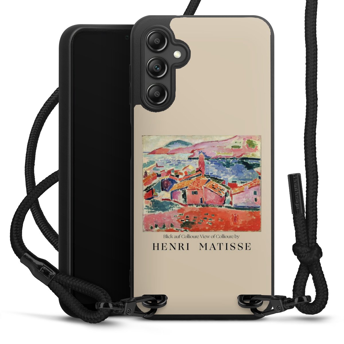 The matt black silicone case is made of flexible TPU (thermoplastic polyurethane) and offers robust protection. The durable, unbreakable material makes the cover flexible and dimensionally stable at the same time. The matte surface makes your design stand out more and is less susceptible to fingerprints and dirt. The stylish trend accessory fits comfortably in the hand and is perfectly complemented by the fabric (polyester) mobile phone strap. The braided fabric strap is approx. 1.70 metres long with a diameter of approx. 0.5 cm. Due to the special knotting technique, the length of the strap can be adjusted by simply pulling it, so that you can adapt it individually to your wishes. The practical case to wear around your neck is available with the fabric strap in black. As a little icing on the cake, we have provided the strap with a chic metal fastener in matt black. The strap is securely fastened to the case with loops made of high-quality genuine leather and press studs. The ends of the fabric strap are covered with metallic end caps and thus protected from fraying.