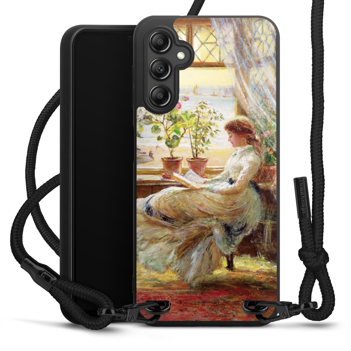 The matt black silicone case is made of flexible TPU (thermoplastic polyurethane) and offers robust protection. The durable, unbreakable material makes the cover flexible and dimensionally stable at the same time. The matte surface makes your design stand out more and is less susceptible to fingerprints and dirt. The stylish trend accessory fits comfortably in the hand and is perfectly complemented by the fabric (polyester) mobile phone strap. The braided fabric strap is approx. 1.70 metres long with a diameter of approx. 0.5 cm. Due to the special knotting technique, the length of the strap can be adjusted by simply pulling it, so that you can adapt it individually to your wishes. The practical case to wear around your neck is available with the fabric strap in black. As a little icing on the cake, we have provided the strap with a chic metal fastener in matt black. The strap is securely fastened to the case with loops made of high-quality genuine leather and press studs. The ends of the fabric strap are covered with metallic end caps and thus protected from fraying.