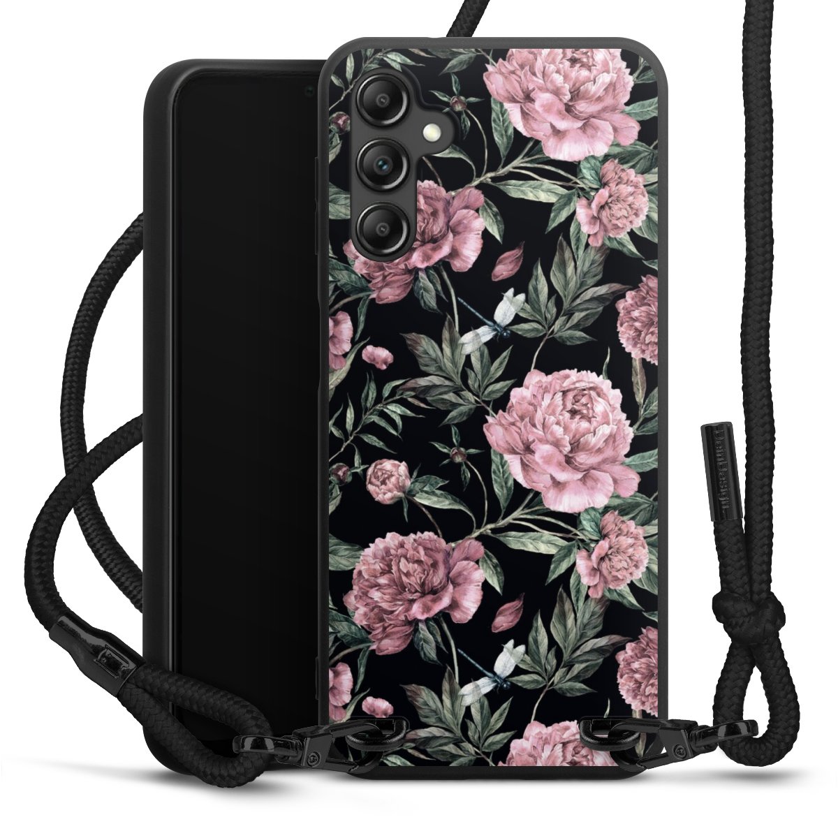 The matt black silicone case is made of flexible TPU (thermoplastic polyurethane) and offers robust protection. The durable, unbreakable material makes the cover flexible and dimensionally stable at the same time. The matte surface makes your design stand out more and is less susceptible to fingerprints and dirt. The stylish trend accessory fits comfortably in the hand and is perfectly complemented by the fabric (polyester) mobile phone strap. The braided fabric strap is approx. 1.70 metres long with a diameter of approx. 0.5 cm. Due to the special knotting technique, the length of the strap can be adjusted by simply pulling it, so that you can adapt it individually to your wishes. The practical case to wear around your neck is available with the fabric strap in black. As a little icing on the cake, we have provided the strap with a chic metal fastener in matt black. The strap is securely fastened to the case with loops made of high-quality genuine leather and press studs. The ends of the fabric strap are covered with metallic end caps and thus protected from fraying.