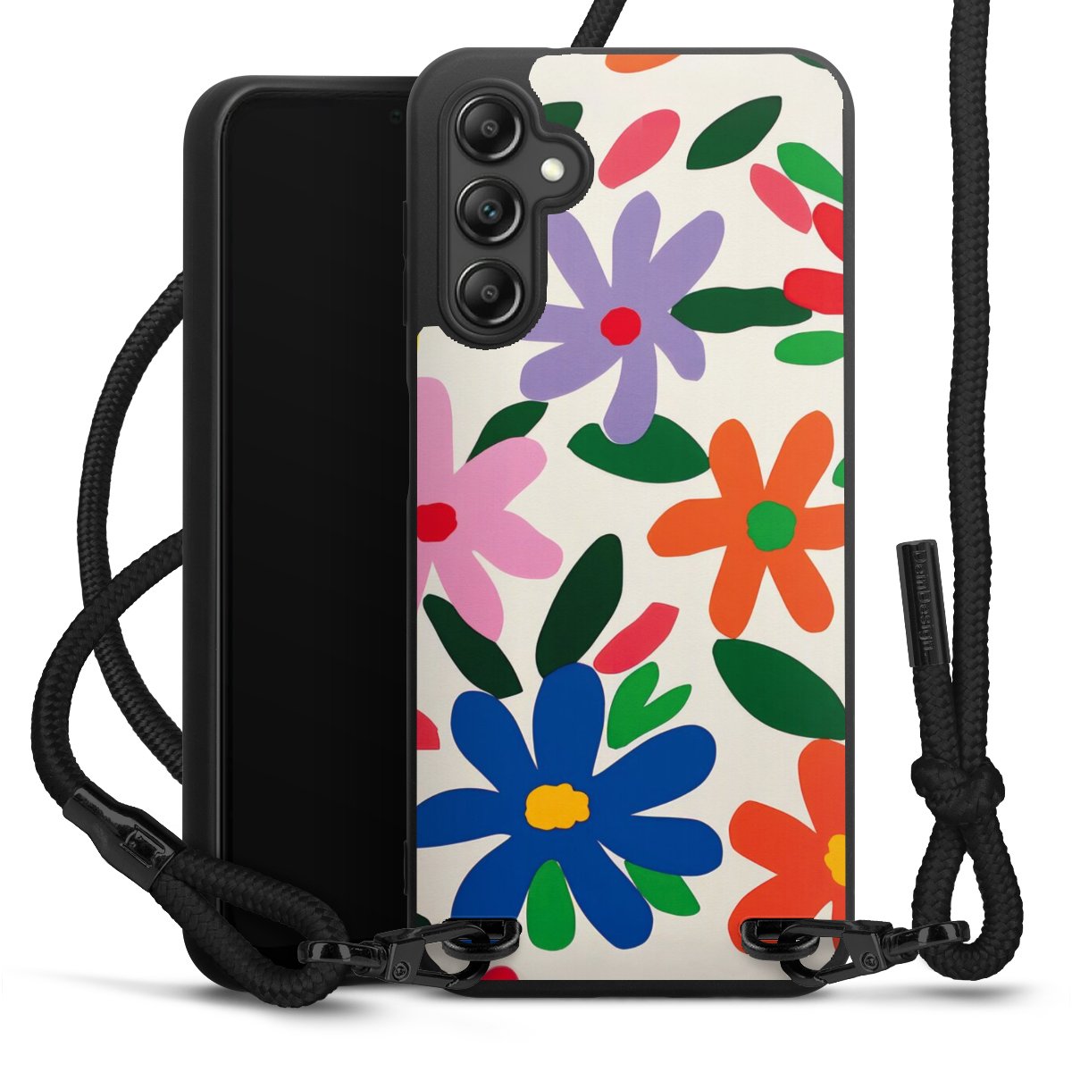 The matt black silicone case is made of flexible TPU (thermoplastic polyurethane) and offers robust protection. The durable, unbreakable material makes the cover flexible and dimensionally stable at the same time. The matte surface makes your design stand out more and is less susceptible to fingerprints and dirt. The stylish trend accessory fits comfortably in the hand and is perfectly complemented by the fabric (polyester) mobile phone strap. The braided fabric strap is approx. 1.70 metres long with a diameter of approx. 0.5 cm. Due to the special knotting technique, the length of the strap can be adjusted by simply pulling it, so that you can adapt it individually to your wishes. The practical case to wear around your neck is available with the fabric strap in black. As a little icing on the cake, we have provided the strap with a chic metal fastener in matt black. The strap is securely fastened to the case with loops made of high-quality genuine leather and press studs. The ends of the fabric strap are covered with metallic end caps and thus protected from fraying.
