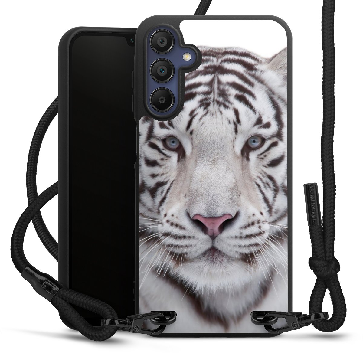 The matt black silicone case is made of flexible TPU (thermoplastic polyurethane) and offers robust protection. The durable, unbreakable material makes the cover flexible and dimensionally stable at the same time. The matte surface makes your design stand out more and is less susceptible to fingerprints and dirt. The stylish trend accessory fits comfortably in the hand and is perfectly complemented by the fabric (polyester) mobile phone strap. The braided fabric strap is approx. 1.70 metres long with a diameter of approx. 0.5 cm. Due to the special knotting technique, the length of the strap can be adjusted by simply pulling it, so that you can adapt it individually to your wishes. The practical case to wear around your neck is available with the fabric strap in black. As a little icing on the cake, we have provided the strap with a chic metal fastener in matt black. The strap is securely fastened to the case with loops made of high-quality genuine leather and press studs. The ends of the fabric strap are covered with metallic end caps and thus protected from fraying.