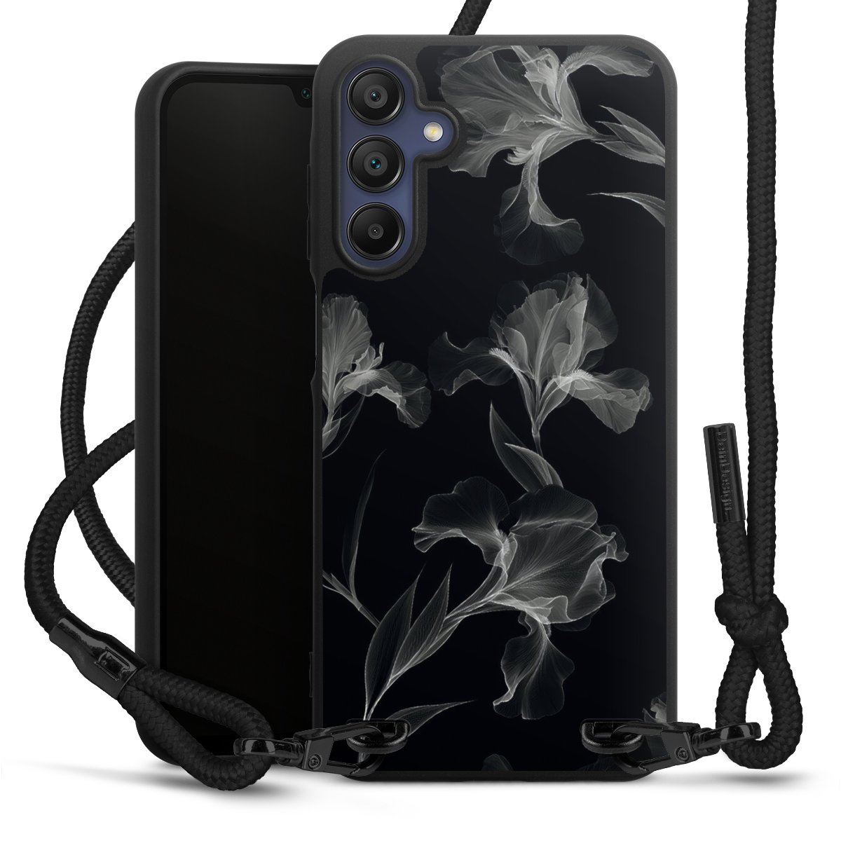 Pure Black: Phone case, fabric strap and metal details in stylish matt black.