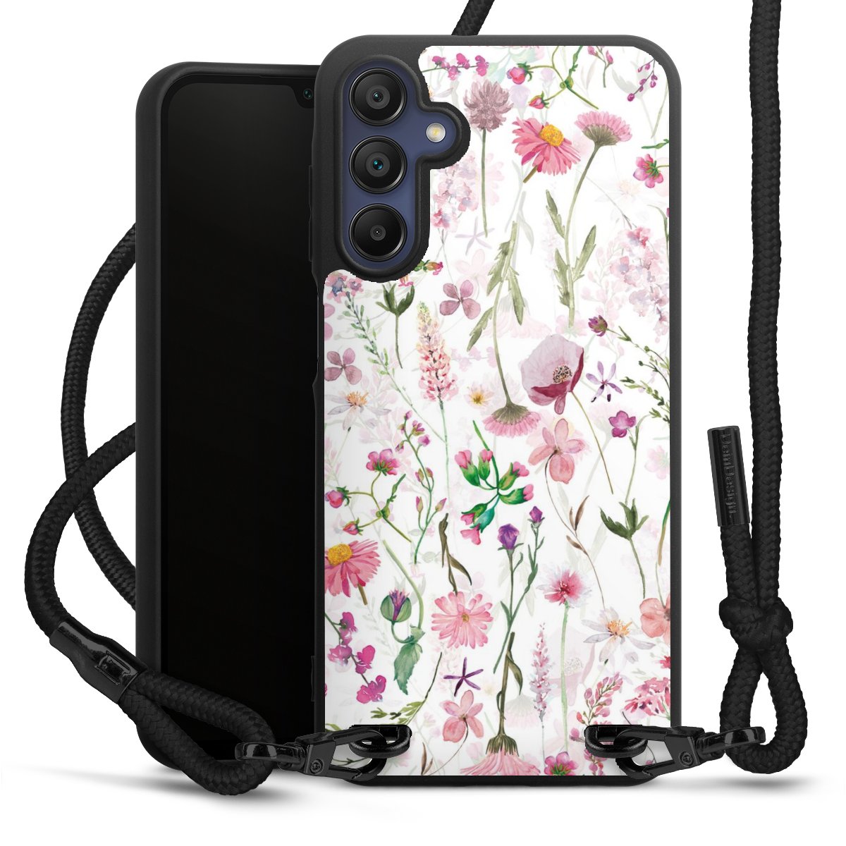 The matt black silicone case is made of flexible TPU (thermoplastic polyurethane) and offers robust protection. The durable, unbreakable material makes the cover flexible and dimensionally stable at the same time. The matte surface makes your design stand out more and is less susceptible to fingerprints and dirt. The stylish trend accessory fits comfortably in the hand and is perfectly complemented by the fabric (polyester) mobile phone strap. The braided fabric strap is approx. 1.70 metres long with a diameter of approx. 0.5 cm. Due to the special knotting technique, the length of the strap can be adjusted by simply pulling it, so that you can adapt it individually to your wishes. The practical case to wear around your neck is available with the fabric strap in black. As a little icing on the cake, we have provided the strap with a chic metal fastener in matt black. The strap is securely fastened to the case with loops made of high-quality genuine leather and press studs. The ends of the fabric strap are covered with metallic end caps and thus protected from fraying.