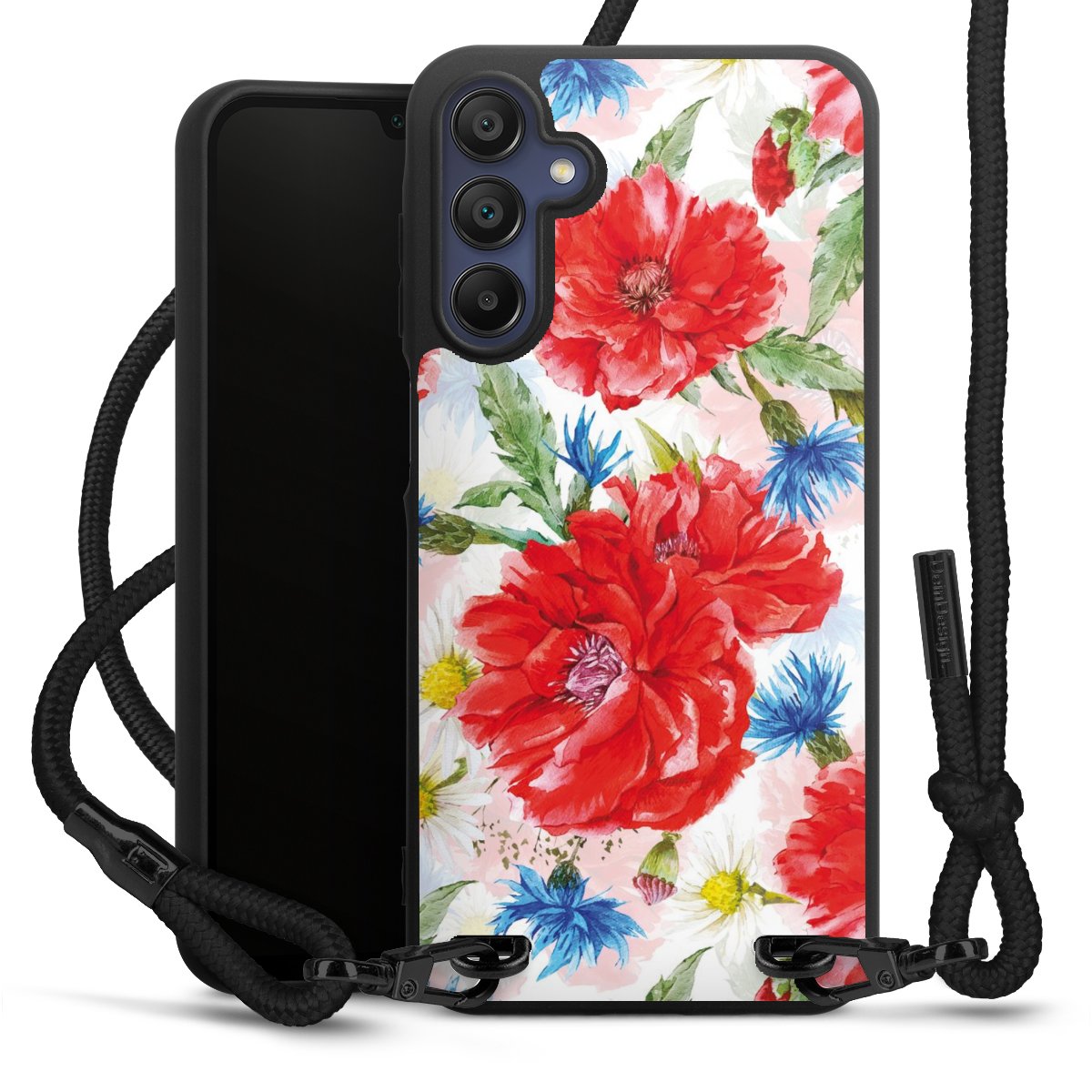 The matt black silicone case is made of flexible TPU (thermoplastic polyurethane) and offers robust protection. The durable, unbreakable material makes the cover flexible and dimensionally stable at the same time. The matte surface makes your design stand out more and is less susceptible to fingerprints and dirt. The stylish trend accessory fits comfortably in the hand and is perfectly complemented by the fabric (polyester) mobile phone strap. The braided fabric strap is approx. 1.70 metres long with a diameter of approx. 0.5 cm. Due to the special knotting technique, the length of the strap can be adjusted by simply pulling it, so that you can adapt it individually to your wishes. The practical case to wear around your neck is available with the fabric strap in black. As a little icing on the cake, we have provided the strap with a chic metal fastener in matt black. The strap is securely fastened to the case with loops made of high-quality genuine leather and press studs. The ends of the fabric strap are covered with metallic end caps and thus protected from fraying.