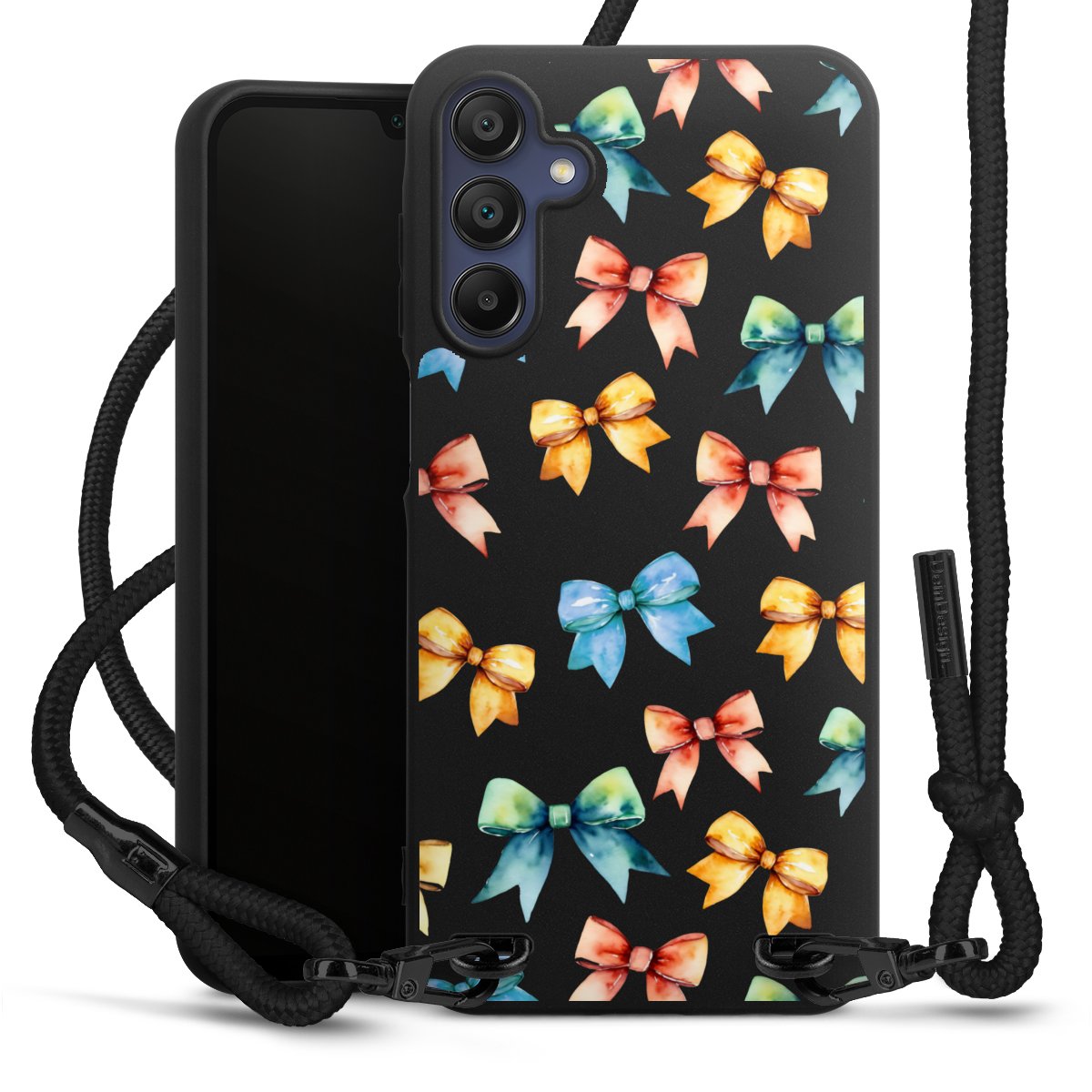The matt black silicone case is made of flexible TPU (thermoplastic polyurethane) and offers robust protection. The durable, unbreakable material makes the cover flexible and dimensionally stable at the same time. The matte surface makes your design stand out more and is less susceptible to fingerprints and dirt. The stylish trend accessory fits comfortably in the hand and is perfectly complemented by the fabric (polyester) mobile phone strap. The braided fabric strap is approx. 1.70 metres long with a diameter of approx. 0.5 cm. Due to the special knotting technique, the length of the strap can be adjusted by simply pulling it, so that you can adapt it individually to your wishes. The practical case to wear around your neck is available with the fabric strap in black. As a little icing on the cake, we have provided the strap with a chic metal fastener in matt black. The strap is securely fastened to the case with loops made of high-quality genuine leather and press studs. The ends of the fabric strap are covered with metallic end caps and thus protected from fraying.